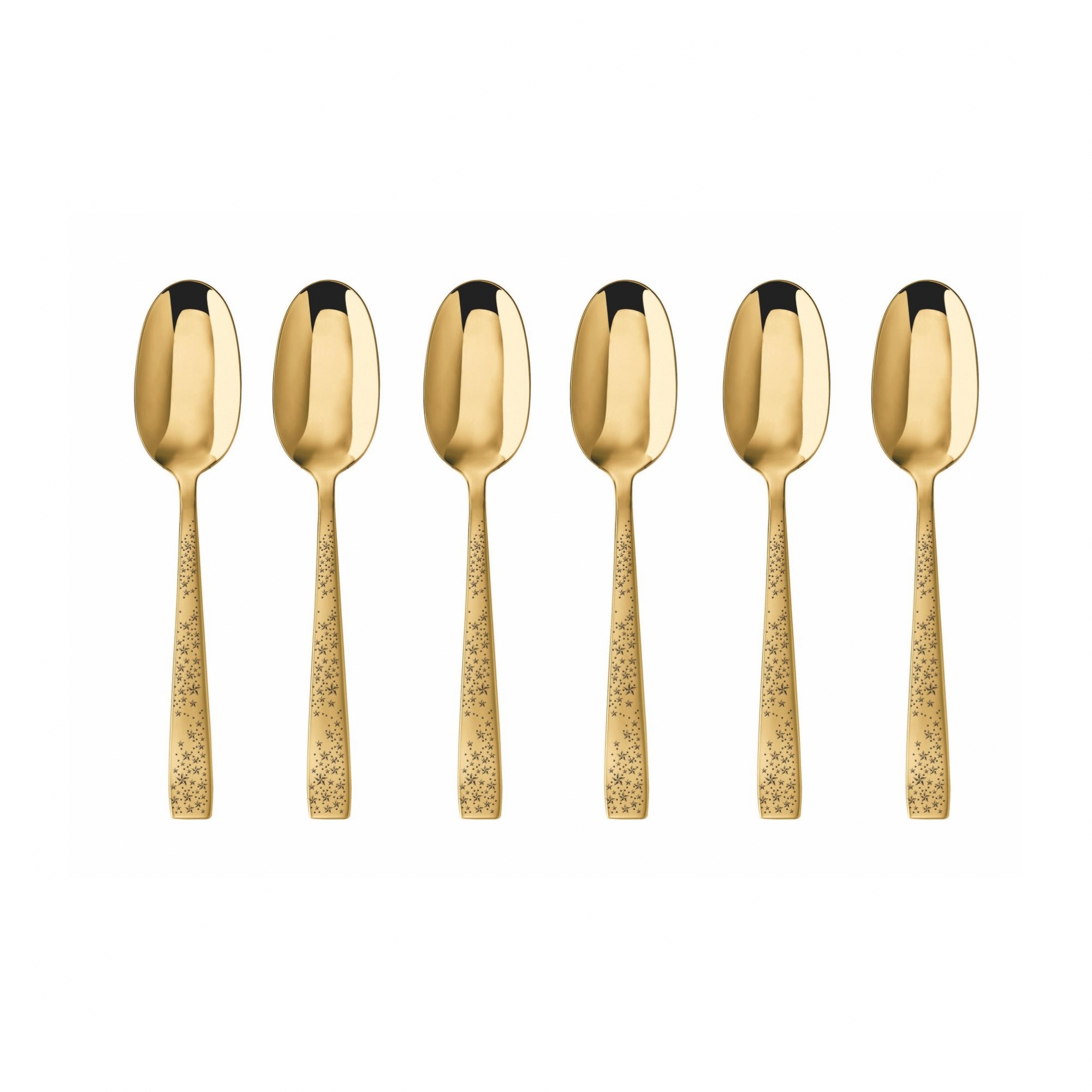 6 cucchiaini da moka, appartenenti alla collezione Cometa, realizzati in acciaio inossidabile 18/10 e PVD. Disponibili nel classico acciaio, o nella splendida finitura oro, questi fantastici cucchiaini saranno i protagonisti in ogni tavola o cucina. Il manico è tempestato da deliziose stelline, quindi sono perfetti anche nei periodi di festa. Ideali per mescolare il caffè all'interno della moka, i cucchiaini Cometa garantiscono qualità e stile! Progettati e realizzati da Sambonet.