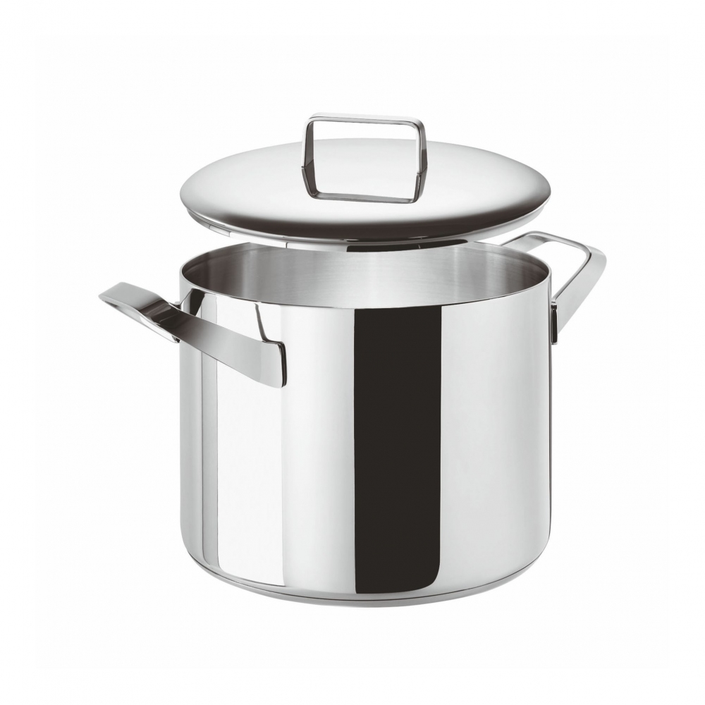 Pentola alta dal diametro di 20 cm comprensiva di coperchio, appartenente alla collezione Menu, realizzata in acciaio inossidabile 18/10. Progettata per garantire la massima qualità e durabilità nel tempo, la pentola Menu riesce a condurre il calore uniformemente, in modo da ottenere una cottura ottimale dei cibi. Il fondo in acciaio magnetico la rende adatta a tutti i tipi di piano cottura, mentre gli ampi manici permettono di spostare il prodotto in sicurezza e con praticità. Un pentola per chef provetti! Progettata e realizzata da Sambonet.