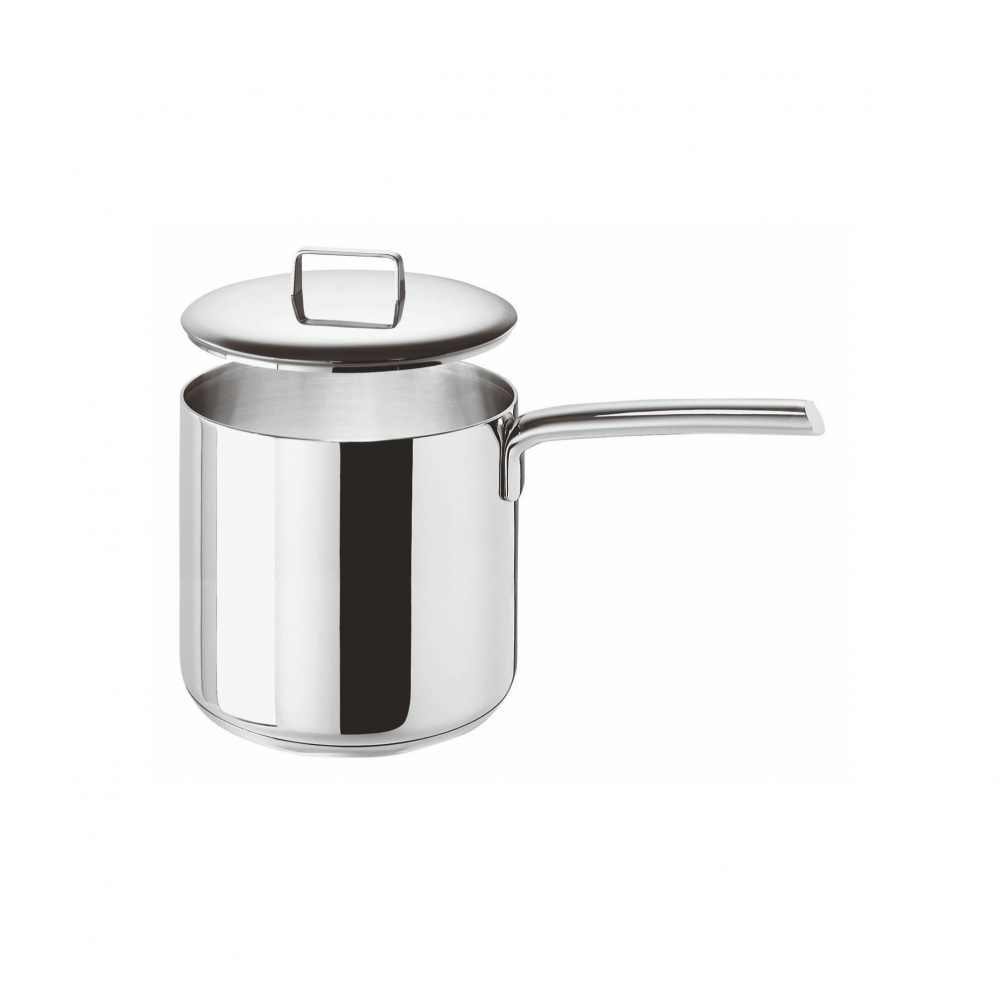 Bollilatte dal diametro di 12 cm comprensivo di coperchio, appartenente alla collezione Menu, realizzato in acciaio inossidabile 18/10. Caratterizzato da un design minimale, il bollilatte Menu è l'accessorio da cucina perfetto per portare alla temperatura di ebollizione, o semplicemente scaldare il latte e versarlo. L'ottima qualità dell'acciaio inossidabile garantisce un'ottima conducibilità del calore, mentre la forma compatta e il manico permettono di maneggiare l'oggetto in tutta praticità. Progettato e realizzato da Sambonet.