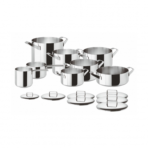 Tutti i pezzi sono progettati per garantire massima qualità e durabilità nel tempo, le pentole e casseruole dispongono di un fondo in acciaio magnetico, che le rende adatte a tutti i tipi di piano cottura, compreso quello a induzione. Tutto il necessario per performance da vero chef! Progettata e realizzata da Sambonet.