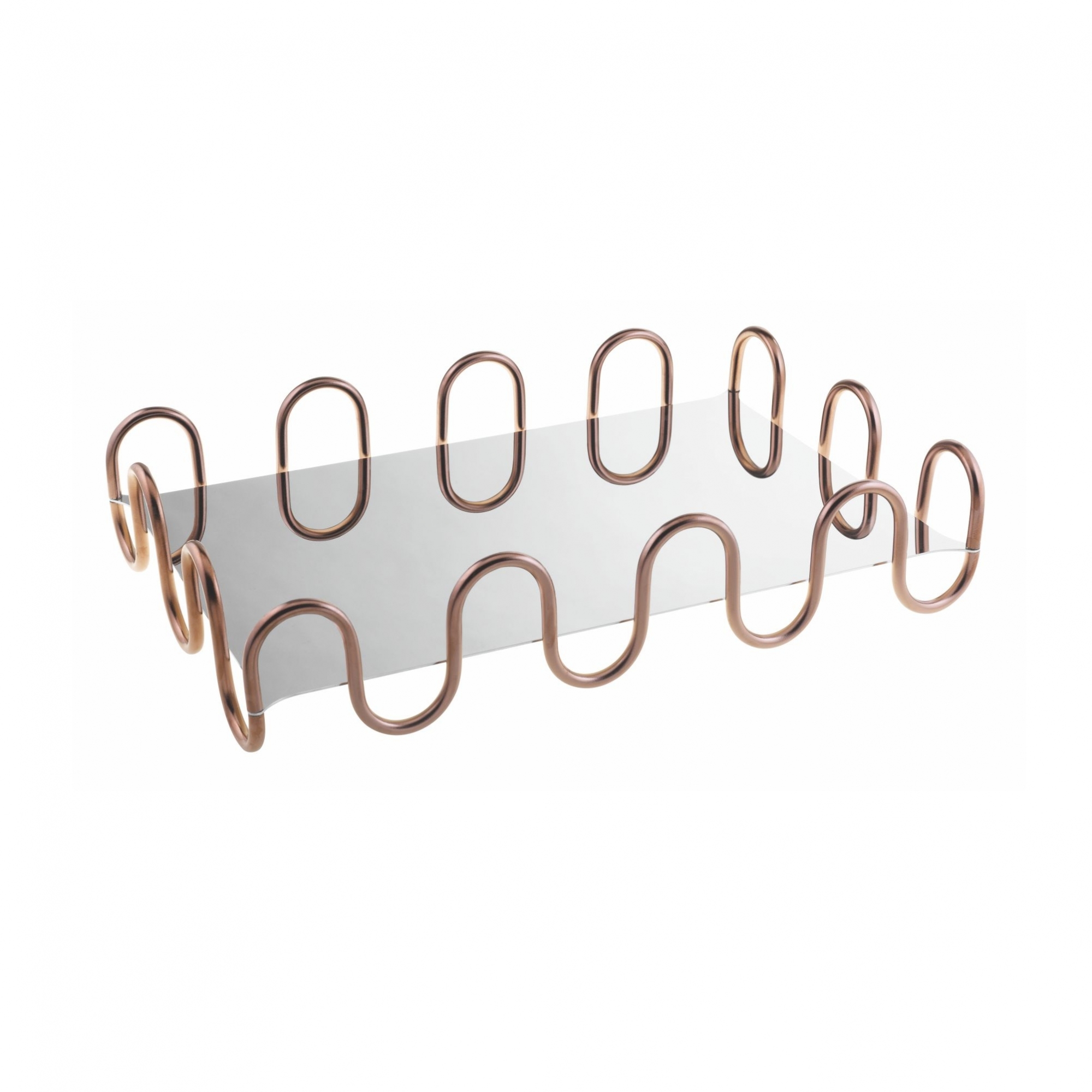 Vassoio di forma rettangolare, appartenente alla collezione Kyma, realizzato in acciaio inossidabile 18/10 e PVD. Disponibile in 4 finiture di colore, il vassoio Kyma riesce a combinare emozioni, artigianalità e innovazione tecnologica. Si ispira alla particolarità e sinuosità degli elementi architettonici classici, reinterpretandone le forme raffinate ed eleganti. Un complemento d'arredo in grado di donare stile e piacevoli sfumature di colore negli ambienti di casa! Disegnato da Serena Confalonieri per Sambonet.