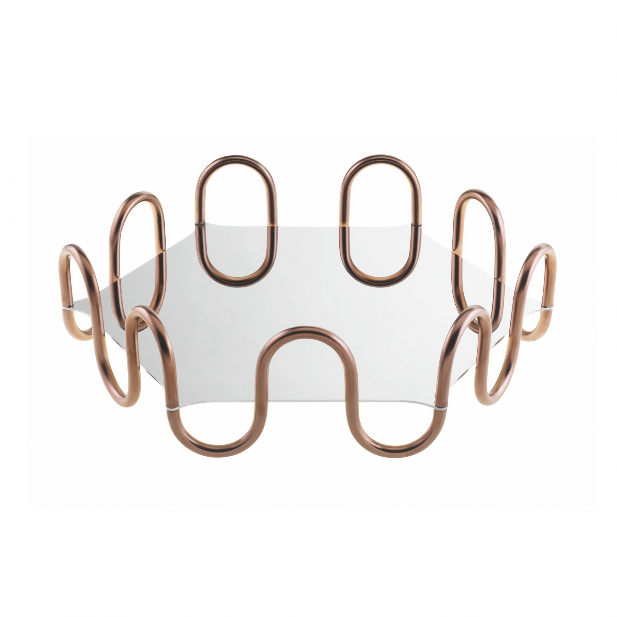Vassoio di forma esagono, appartenente alla collezione Kyma, realizzato in acciaio inossidabile 18/10 e PVD. Disponibile in 4 finiture di colore, il vassoio Kyma riesce a combinare emozioni, artigianalità e innovazione tecnologica. Si ispira alla particolarità e sinuosità degli elementi architettonici classici, reinterpretandone le forme raffinate ed eleganti. Un complemento d'arredo in grado di donare stile e piacevoli sfumature di colore negli ambienti di casa! Disegnato da Serena Confalonieri per Sambonet.
