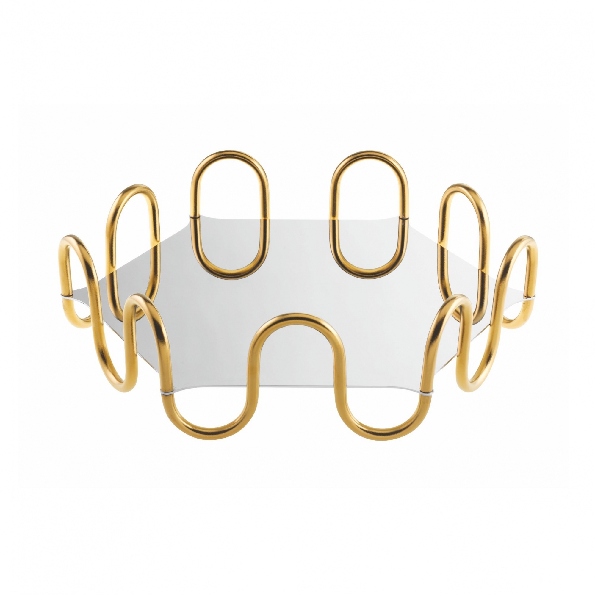 Vassoio di forma esagono, appartenente alla collezione Kyma, realizzato in acciaio inossidabile 18/10 e PVD. Disponibile in 4 finiture di colore, il vassoio Kyma riesce a combinare emozioni, artigianalità e innovazione tecnologica. Si ispira alla particolarità e sinuosità degli elementi architettonici classici, reinterpretandone le forme raffinate ed eleganti. Un complemento d'arredo in grado di donare stile e piacevoli sfumature di colore negli ambienti di casa! Disegnato da Serena Confalonieri per Sambonet.