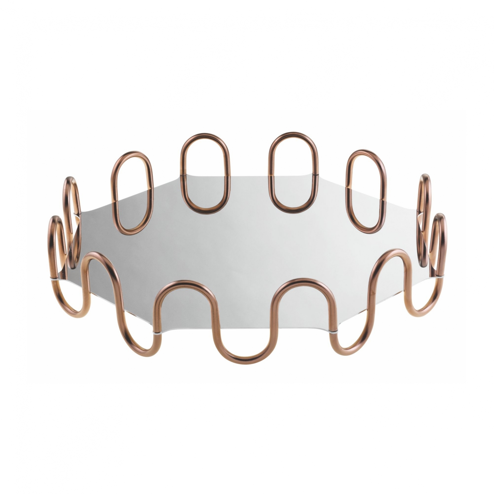 Vassoio di forma ottagonale, appartenente alla collezione Kyma, realizzato in acciaio inossidabile 18/10 e PVD. Disponibile in 4 finiture di colore, il vassoio Kyma riesce a combinare emozioni, artigianalità e innovazione tecnologica. Si ispira alla particolarità e sinuosità degli elementi architettonici classici, reinterpretandone le forme raffinate ed eleganti. Un complemento d'arredo in grado di donare stile e piacevoli sfumature di colore negli ambienti di casa! Disegnato da Serena Confalonieri per Sambonet.