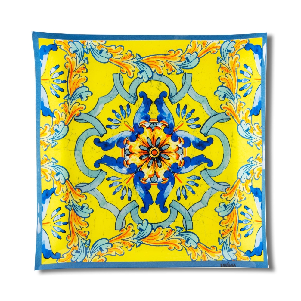Piatto da servizio 30x30 cm della collezione Trinacria, realizzato in porcellana decorata. Perfetto sia come elemento funzionale per la tavola, sia come elemento decorativo, il piatto da servizio Trinacria si presenta con un design molto suggestivo, contraddistinto da una decorazione tipica dell'arte siciliana. Un piatto dall'eleganza assoluta, dotato di forte identità e in grado di donare un carattere esclusivo alla tua tavola o al tuo arredamento. Progettato e realizzato da Excelsa.