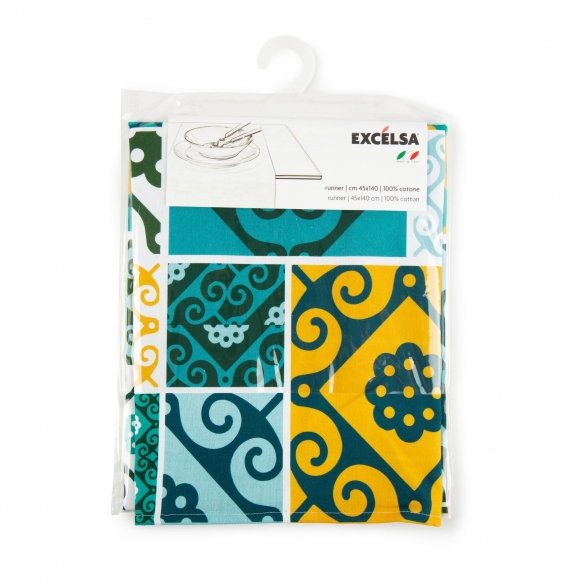 Runner 45x140 cm, appartenente alla collezione Maiolica, realizzato in cotone al 100%. Disponibile in 3 eleganti e delicate finiture di colore, questo splendido runner ti permetterà di imbastire un'apparecchiata coi fiocchi. Abbinalo agli altri elementi della collezione Maiolica, per ottenere una composizione suggestiva, in pieno stile medioevale! Progettato e realizzato da Excelsa.