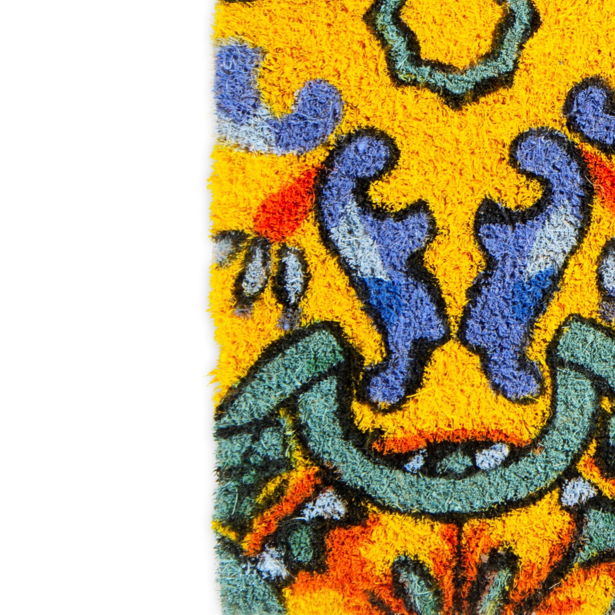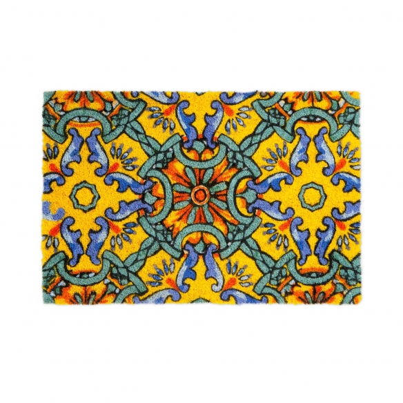 Zerbino 60x40 cm, appartenente alla collezione Trinacria, realizzato in fibra coir con setole in fibra di cocco. Il fondo è realizzato in gomma PVC, antiscivolo. Elegante e decorativo, lo zerbino Trinacria si presenta con un design molto elegante e particolare, con decorazioni e colori che rimandano all'iconico stile siciliano. Perfetto per arredamenti classici e di gusto, lo zerbino Trinacria è adatto sia per uso interno che esterno. Progettato e realizzato da Excelsa.