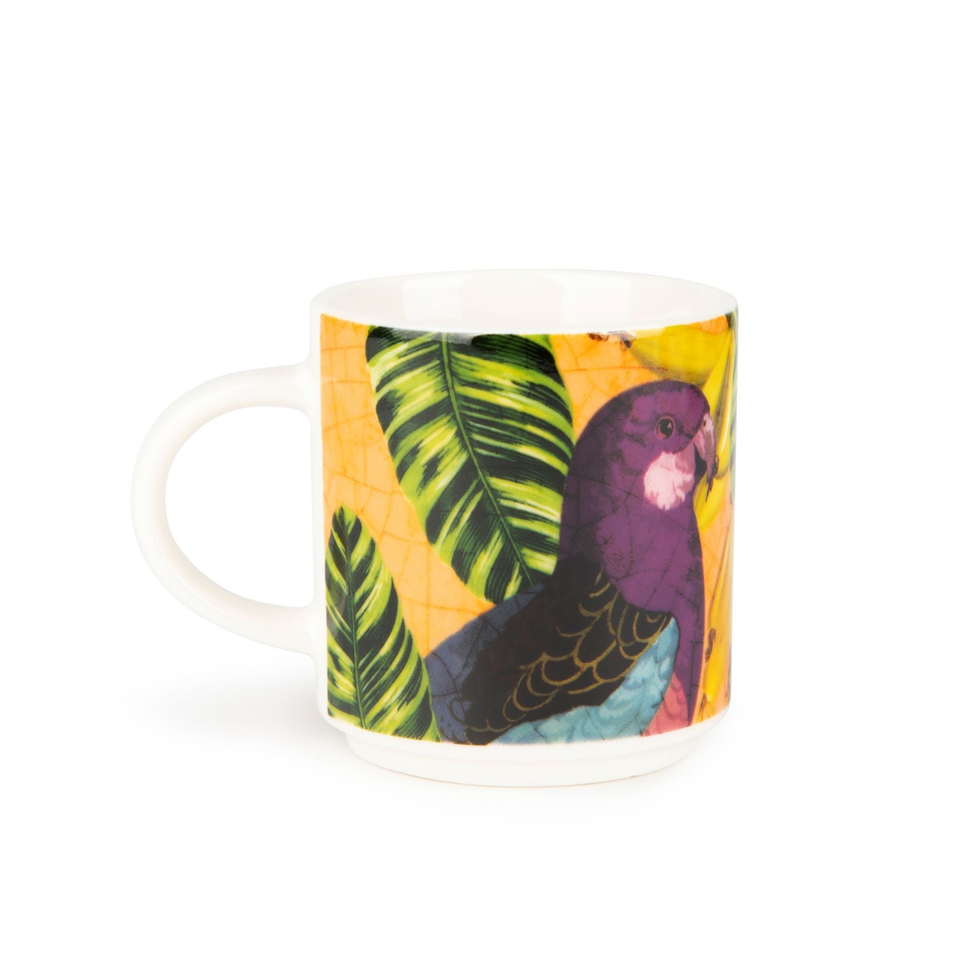 Tazza da caffè dalla capacità di 100 ml, appartenente alla collezione Havana, realizzata in porcellana decorata. Caratterizzata da un'affascinante decoro raffigurante un simpatico pappagallo in un ambiente tropicale, la tazza da caffè Havana è l'ideale per arricchire con stile la tua tavola! I colori sgargianti spiccano su tutto, potrai creare magiche composizioni, se scegli di abbinarla agli elementi della stessa collezione. Progettata e realizzata da Excelsa.