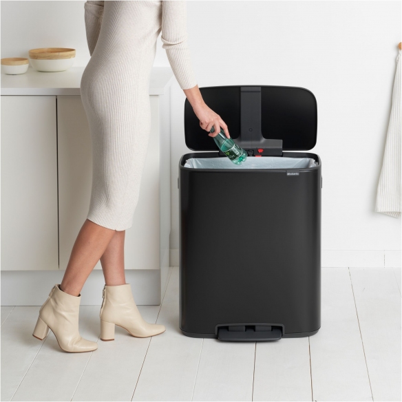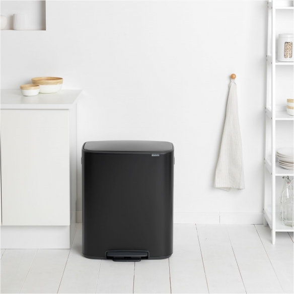 Pattumiera a pedale Bo, realizzata in lega d'acciaio con cestino interno in plastica riciclata. Con una capacità di 60 litri, la pattumiera Bo si presenta con un design lineare, compatto e salvaspazio, risultando anche molto igienica grazie al pedale ed il coperchio che si chiude delicatamente. Presenta delle gambe antiscivolo regolabili, che la rendono molto stabile e posizionabile perfettamente alla parete. Disponibile in 6 eleganti e versatili finiture di colore, la pattumiera Bo ha un sistema di chiusura "Soft Touch", che permette un'utilizzo pratico e silenzioso, con un solo tocco di mano! Progettata e realizzata da Brabantia.