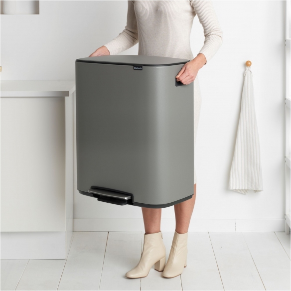 Pattumiera a pedale Bo, realizzata in lega d'acciaio con cestino interno in plastica riciclata. Con una capacità di 60 litri, la pattumiera Bo si presenta con un design lineare, compatto e salvaspazio, risultando anche molto igienica grazie al pedale ed il coperchio che si chiude delicatamente. Presenta delle gambe antiscivolo regolabili, che la rendono molto stabile e posizionabile perfettamente alla parete. Disponibile in 6 eleganti e versatili finiture di colore, la pattumiera Bo ha un sistema di chiusura "Soft Touch", che permette un'utilizzo pratico e silenzioso, con un solo tocco di mano! Progettata e realizzata da Brabantia.