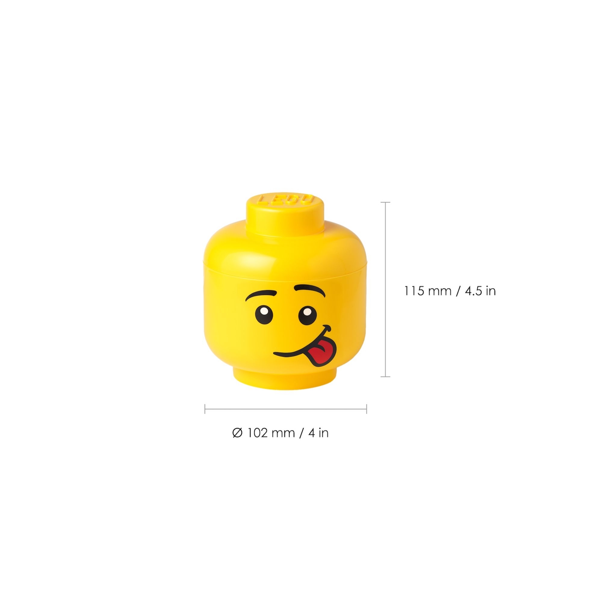 Contenitore Head Silly Boy, realizzato in plastica ABS. Disponibile in 3 diverse dimensioni (large, small e mini), questo splendido contenitore può essere utilizzato per riporre gli iconici mattoncini Lego®, altri giocattoli o persino la frutta! Il design si ispira alla testa della classica minifigure Lego® in versione "sciocca", ed è pronto ad arricchire il tuo ambiente con simpatia e giocosità! Progettato e realizzato da Lego®.