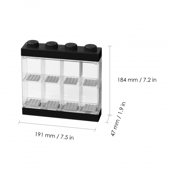 Vetrina per 8 minifigure, realizzata in policarbonato e ABS. Disponibile in nero o in rosso, questo splendido accessorio è perfetto per mettere in mostra le tue minifigure Lego®, conservandole e mettendole al sicuro. Potrai appendere questa vetrina a muro o semplicemente adagiarla su un tavolo o su una mensola. Sono facilmente impilabili, grazie all'incastro superiore facilmente personalizzabile. Una perfetta idea regalo per tutti gli appassionati! Progettata e realizzata da Lego®.