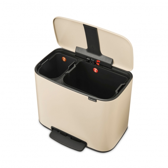 Pattumiera a pedale Bo, realizzata in lega d'acciaio con cestino interno in plastica riciclata. Con una capacità di 34 litri (uno scomparto da 11 litri e uno da 23 litri), la pattumiera Bo si presenta con un design lineare, compatto e salvaspazio, risultando anche molto igienica grazie al pedale ed il coperchio che si chiude delicatamente. Presenta delle gambe antiscivolo regolabili, che la rendono molto stabile e posizionabile perfettamente alla parete. Disponibile in 6 eleganti e versatili finiture di colore, la pattumiera Bo ha un sistema di chiusura "Soft Touch", che permette un'utilizzo pratico e silenzioso, con un solo tocco di mano! Progettata e realizzata da Brabantia.