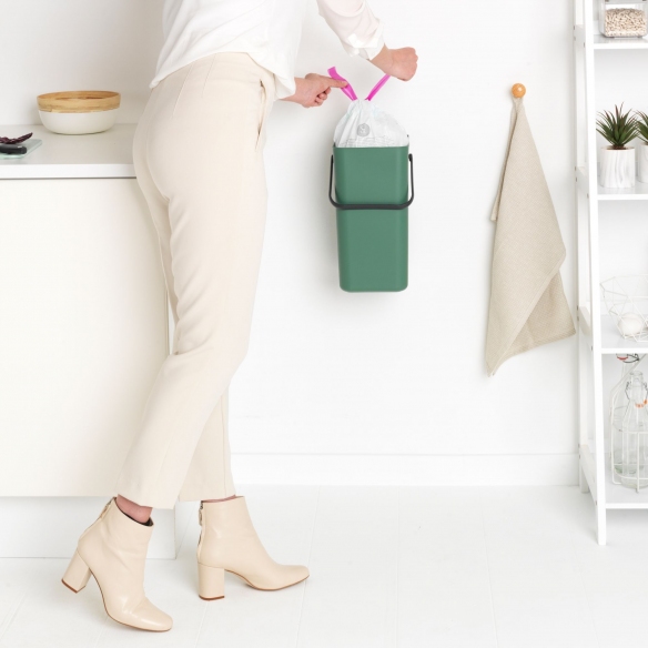 Pattumiera dalla capacità di 16 litri, appartenente alla collezione Sort & Go, realizzata in plastica. Disponibile in 5 eleganti finiture di colore, la pattumiera Sort & Go è sinonimo di versatilità per la tua casa! Può essere posizionata ovunque: sul piano di lavoro, nel cassetto o applicata alla parete. La comoda e pratica maniglia ti permette di svuotarla facilmente, mentre la forma, senza spigoli e senza bordi, garantisce una facilissima pulizia! E' inclusa una confezione gratuita di sacchetti PerfectFit (codice C). Progettata e realizzata da Brabantia.