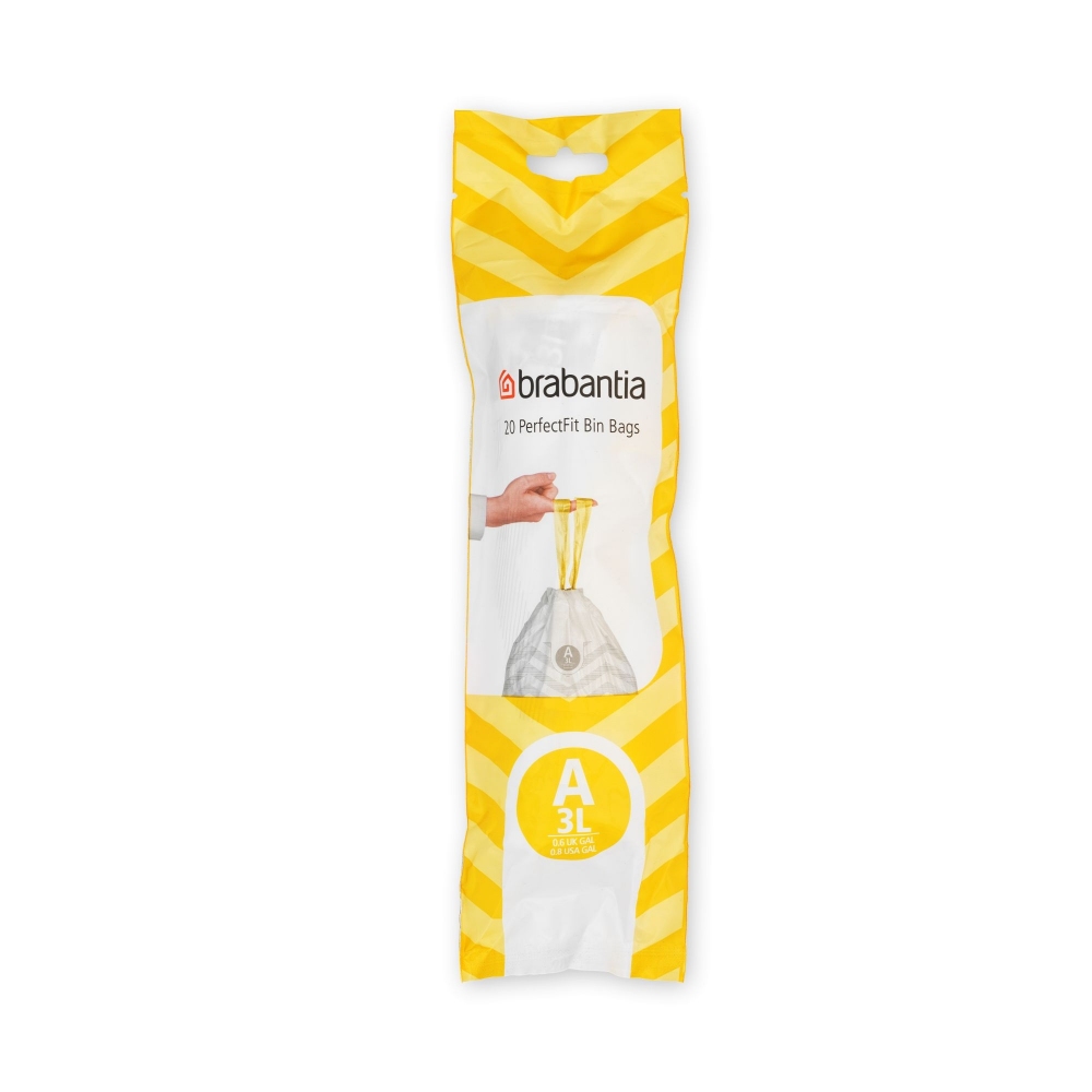 20 sacchetti PerfectFit codice A, dalla capacità di 3 litri. Realizzati su misura per le pattumiere Brabantia, i sacchetti PerfectFit sono realizzati in plastica resistente e anti strappo. Non avrai nessun bordo antiestetico, quando il coperchio della pattumiera è chiuso, il sacchetto è invisibile. Il pratico nastro di chiusura ti permette di aprire e richiudere facilmente il sacchetto, mentre gli speciali fori di ventilazione prevengono lo spiacevole effetto sottovuoto. Progettati e realizzati da Brabantia.