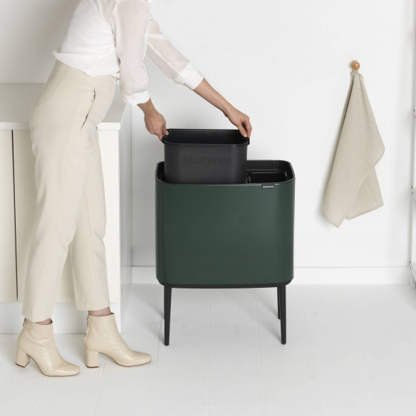 Pattumiera Bo Touch Bin, dalla capacità di 34 litri (1 scomparto da 11 litri e uno da 23 litri), realizzata con struttura in metallo e cestini rimovibili in plastica. Disponibile in 8 eleganti e versatili finiture di colore, la pattumiera Bo Touch Bin è l'accessorio ideale per la separazione dei rifiuti, grazie ai tre secchi interni. Si apre con un leggero tocco: l'apertura con sistema soft-touch ti permetterà di sollevare il coperchio semplicemente sfiorandolo! Le gambe antiscivolo regolabili garantiscono grande stabilità. Compatta e salvaspazio, la pattumiera Bo Touch Bin si inserisce facilmente in qualsiasi angolo della casa! E' inclusa una confezione gratuita di sacchetti PerfectFit. Progettata e realizzata da Brabantia.