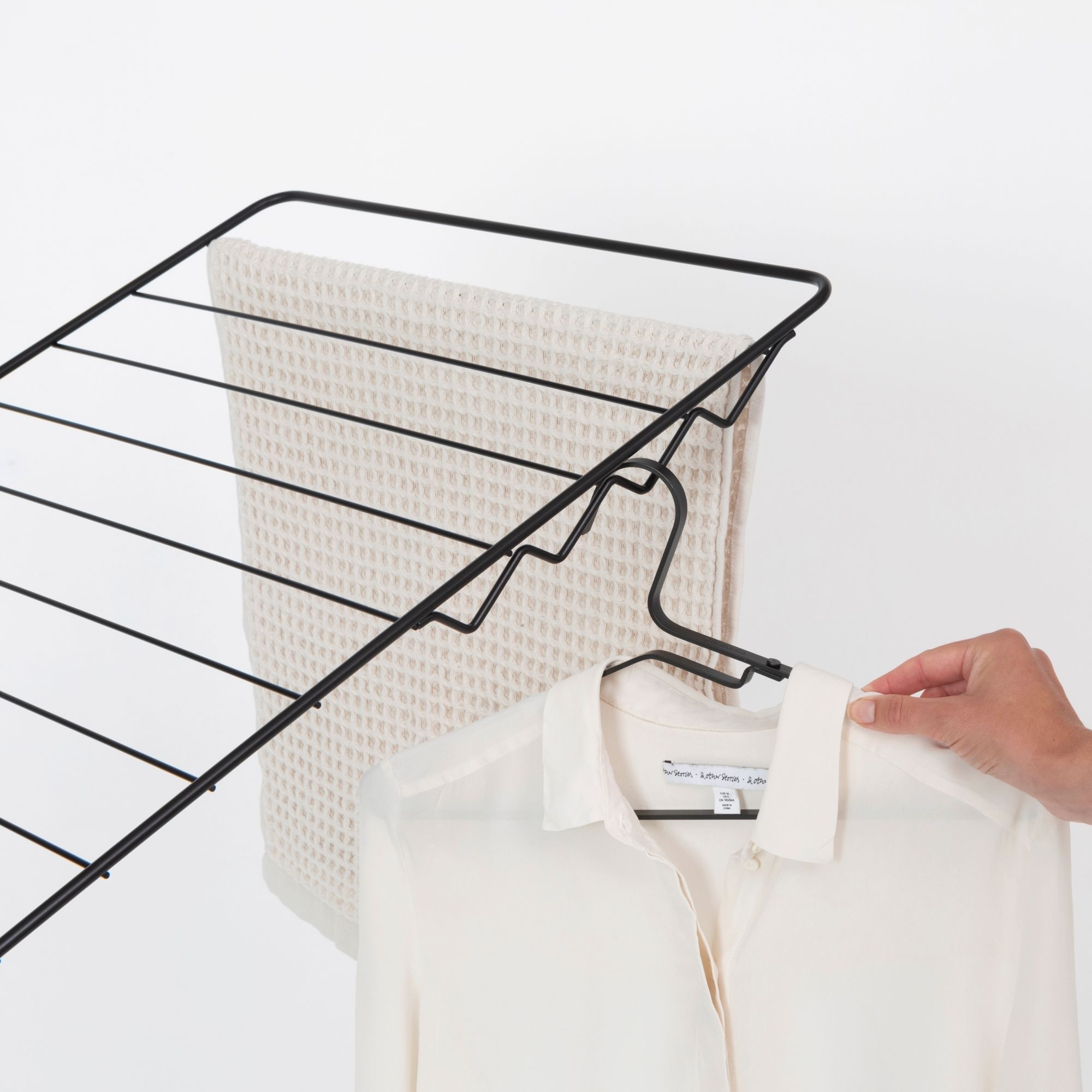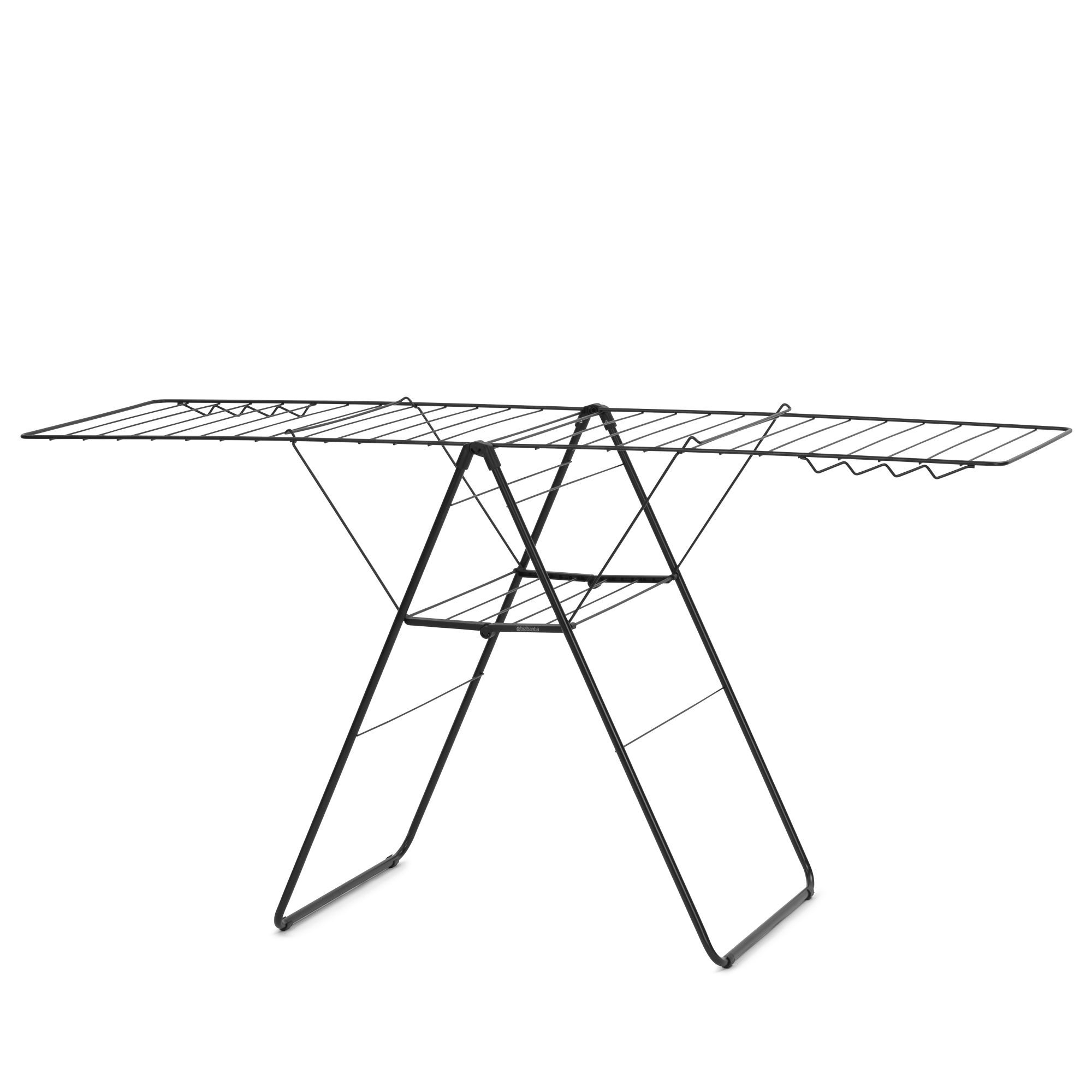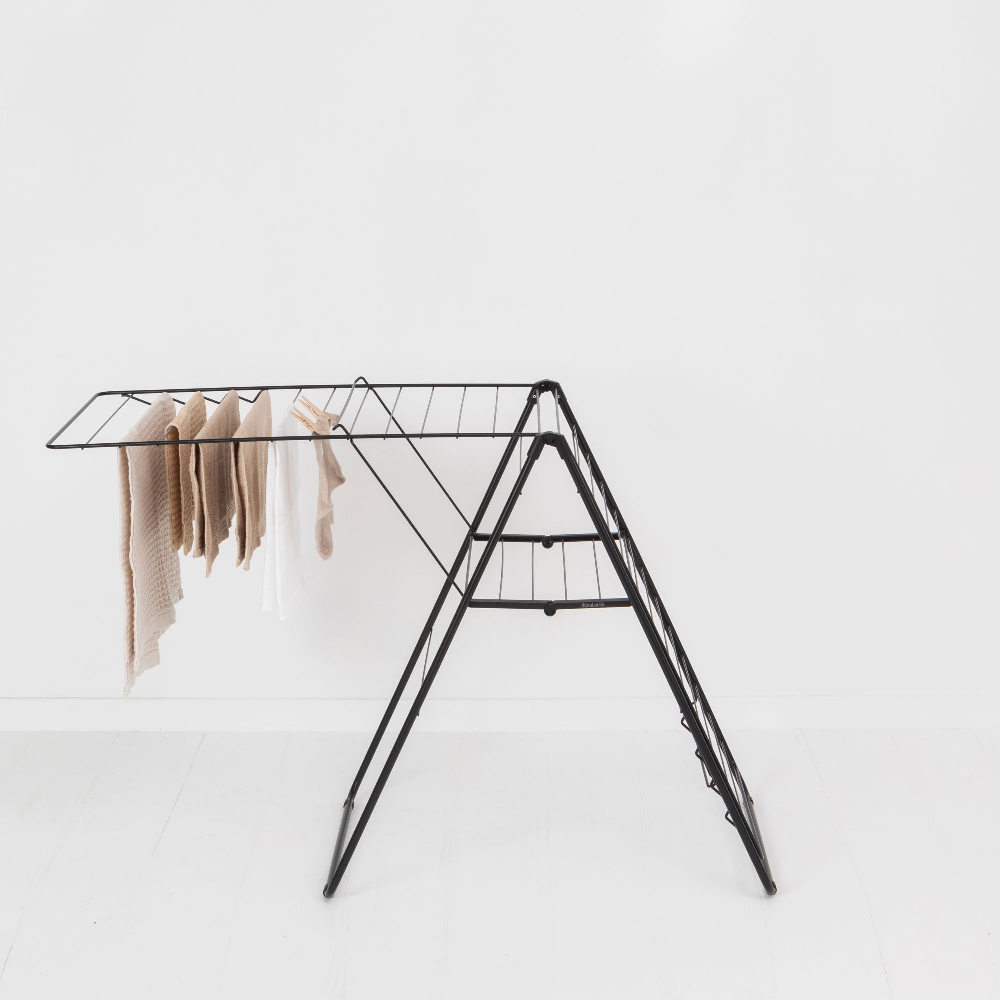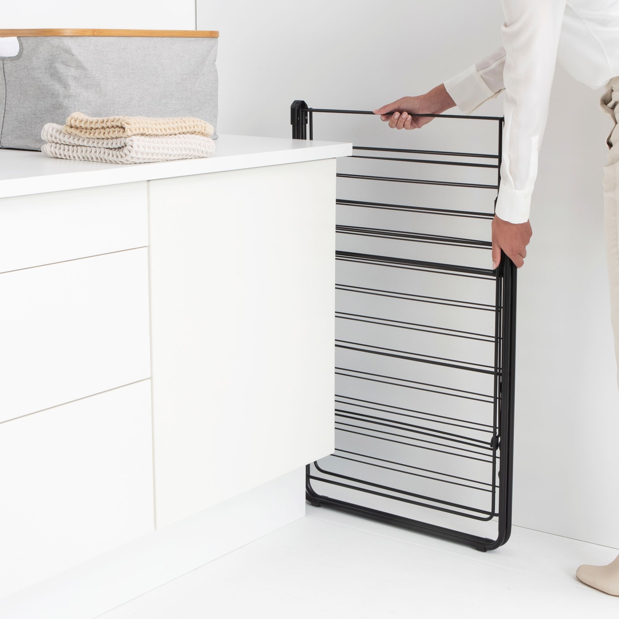 Stendibiancheria della collezione HangOn, dalla lunghezza di 25 metri, realizzato in metallo resistente. Disponibile in 3 finiture di colore, HangOn è un accessorio immancabile nella tua casa: è leggero, pratico, compatto e sfrutta lo spazio in modo intelligente! Può accogliere fino a 3 carichi di bucato e l'altezza delle ali è regolabile! Le dimensioni rimangono contenute, sia una volta ripiegato sia quando chiuso. I piedini di protezione robusti evitano di rovinare il pavimento e garantiscono grande stabilità. Lo stendino per eccellenza! Progettato e realizzato da Brabantia.