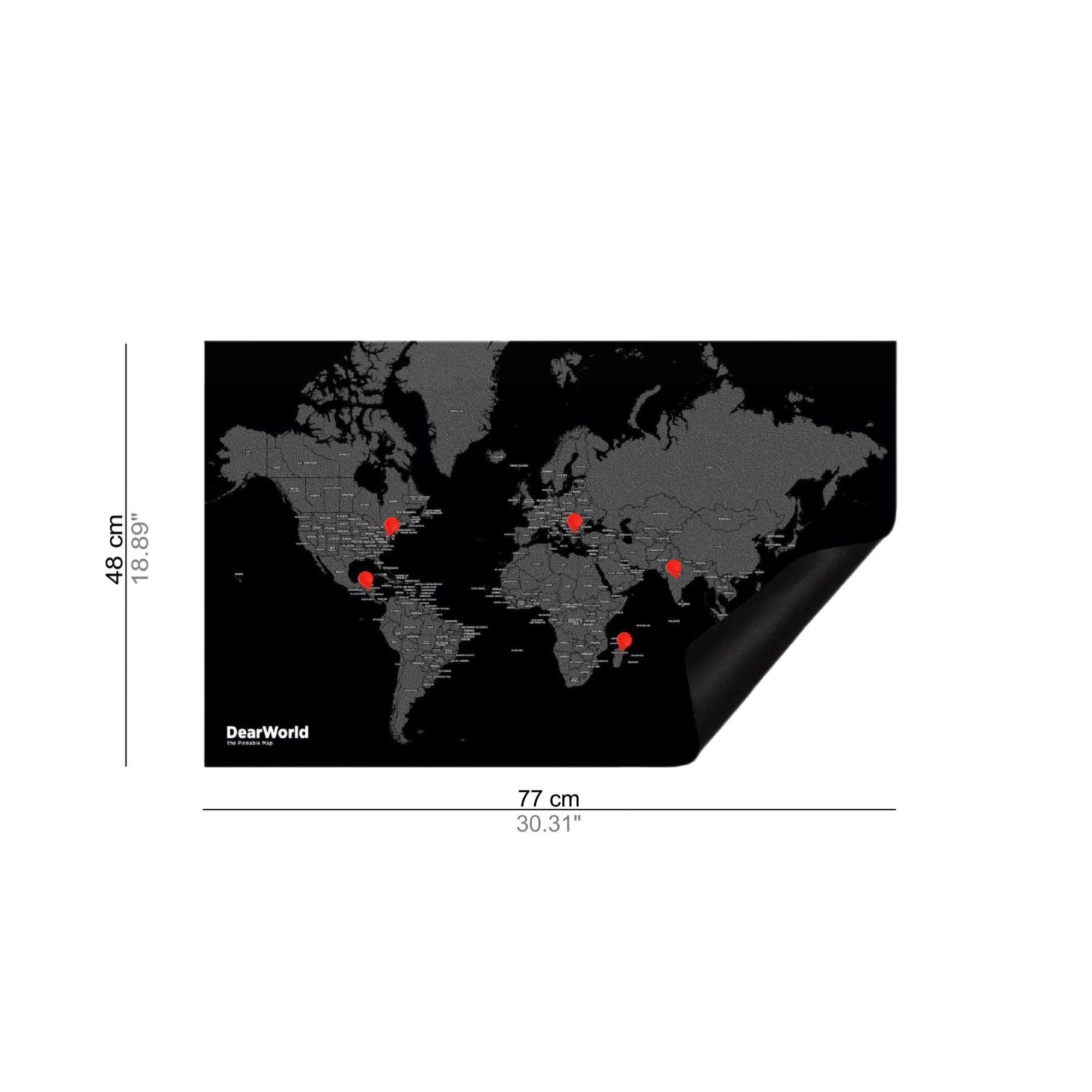 Mappa da parete DearWorld by Country 77x48 cm, stampata su pannelli in feltro. E' un complemento molto particolare, non solo un semplice oggetto da osservare e ammirare, ma un qualcosa di innovativo con cui si può interagire. Nella confezione è incluso un set di 15 spille, da posizionare sulla mappa a piacimento. Il feltro è un materiale che trasmette calore, intimità e accoglienza. Ideale sia in casa che in ufficio, DearWorld by Country raffigura gli stati del mondo e i loro confini: potrai creare un vero e proprio diario di viaggio personale! Disegnata da Alessandro Maffioletti ed Emanuele Pizzolorusso per Palomar.
