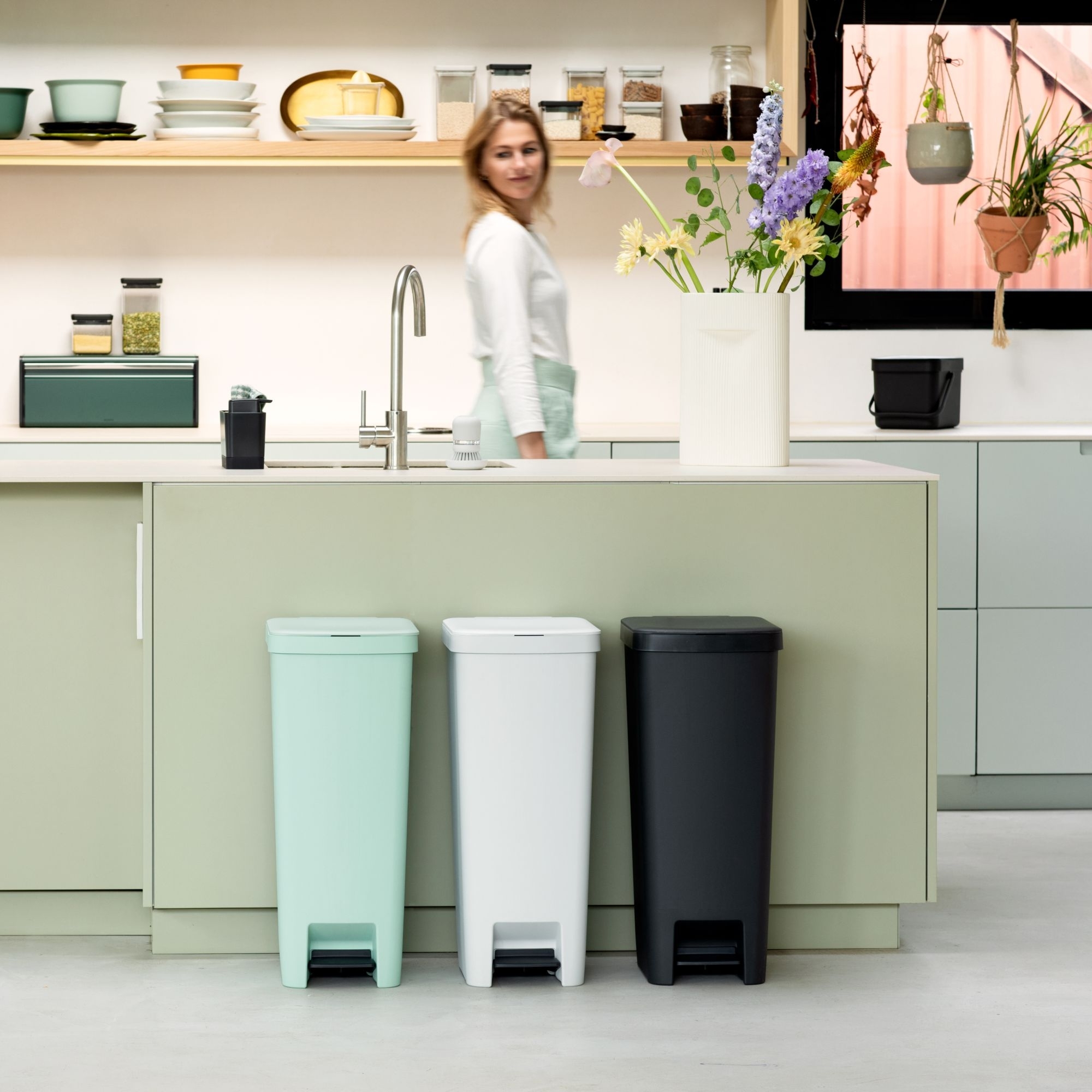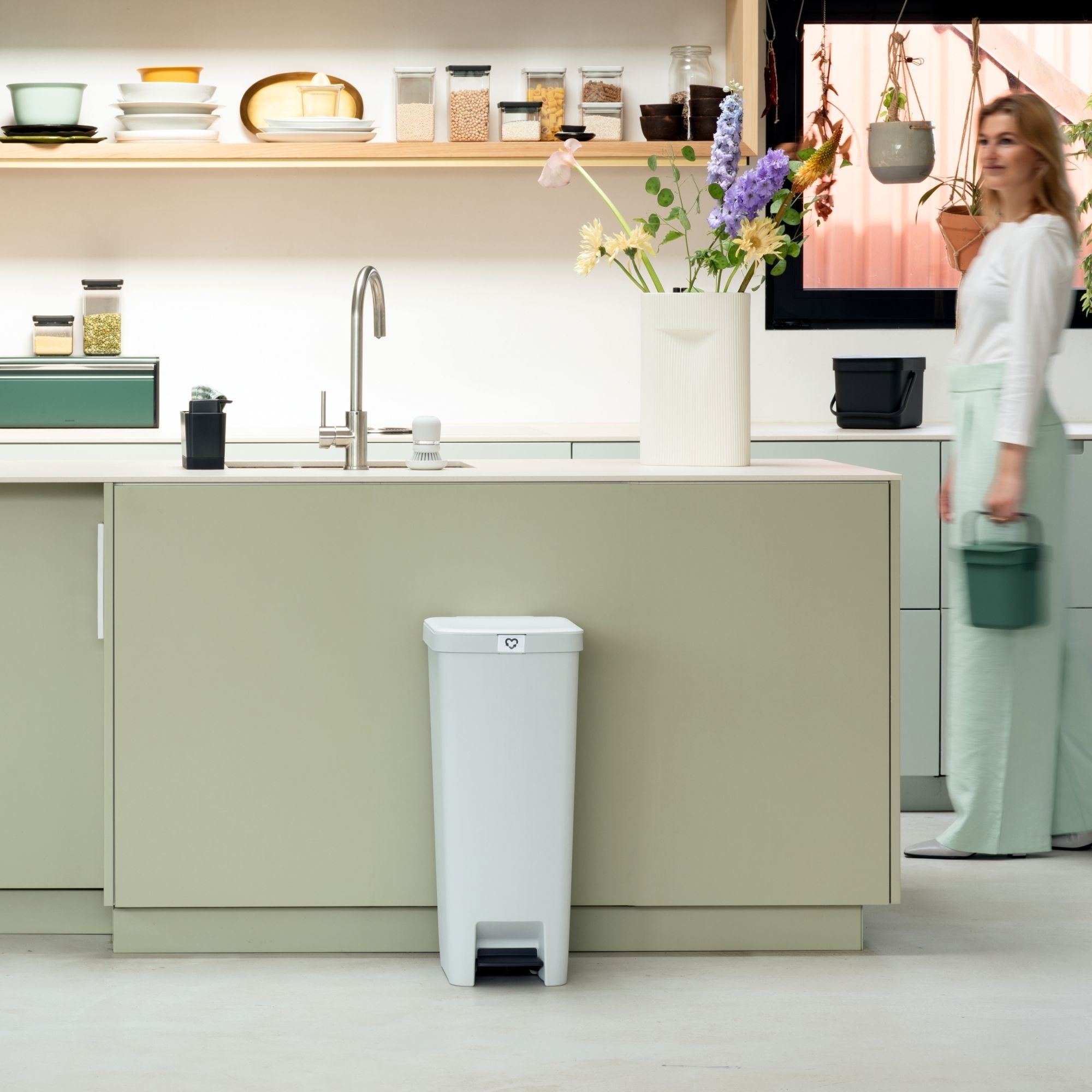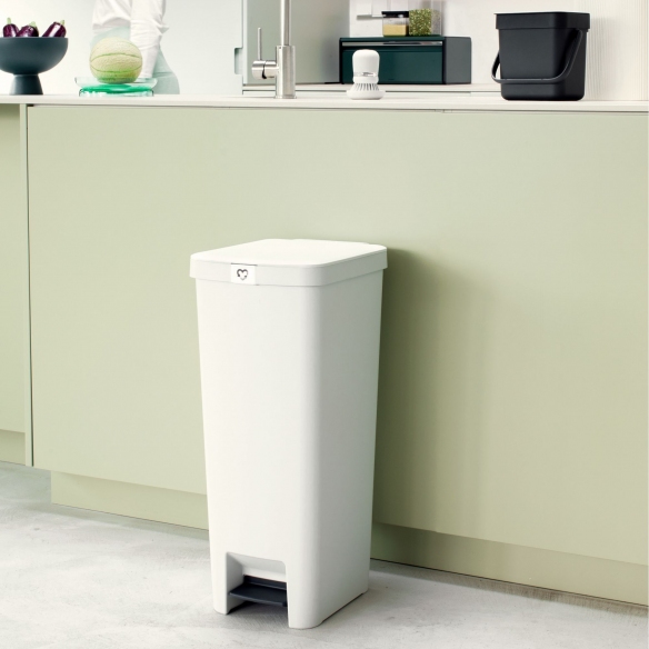 Sei alla ricerca di una soluzione elegante per separare i rifiuti? Scegli la pattumiera a pedale StepUp 40L! Realizzata con il 91% di materiale riciclato ed ideata per il riciclaggio dei rifiuti. Con porta etichette a click che permette di personalizzare la tipologia di rifiuto e pratico contenitore interno per sacchetti. StepUp è pratica, comoda e funzionale, la leggerezza è sicuramente la caratteristica migliore, poiché la struttura in plastica la rende facile da trasportare. Inoltre, la larga maniglia sul dietro a rende pratica da spostare. StepUp si appoggia perfettamente alla parete o si posiziona su un angolo. Se ami riciclare, amerai sicuramente questa pattumiera. Scegli la pattumiera a pedale StepUp! Scopri gli altri fantastici prodotti Brabantia qui, su Newpop.it!
