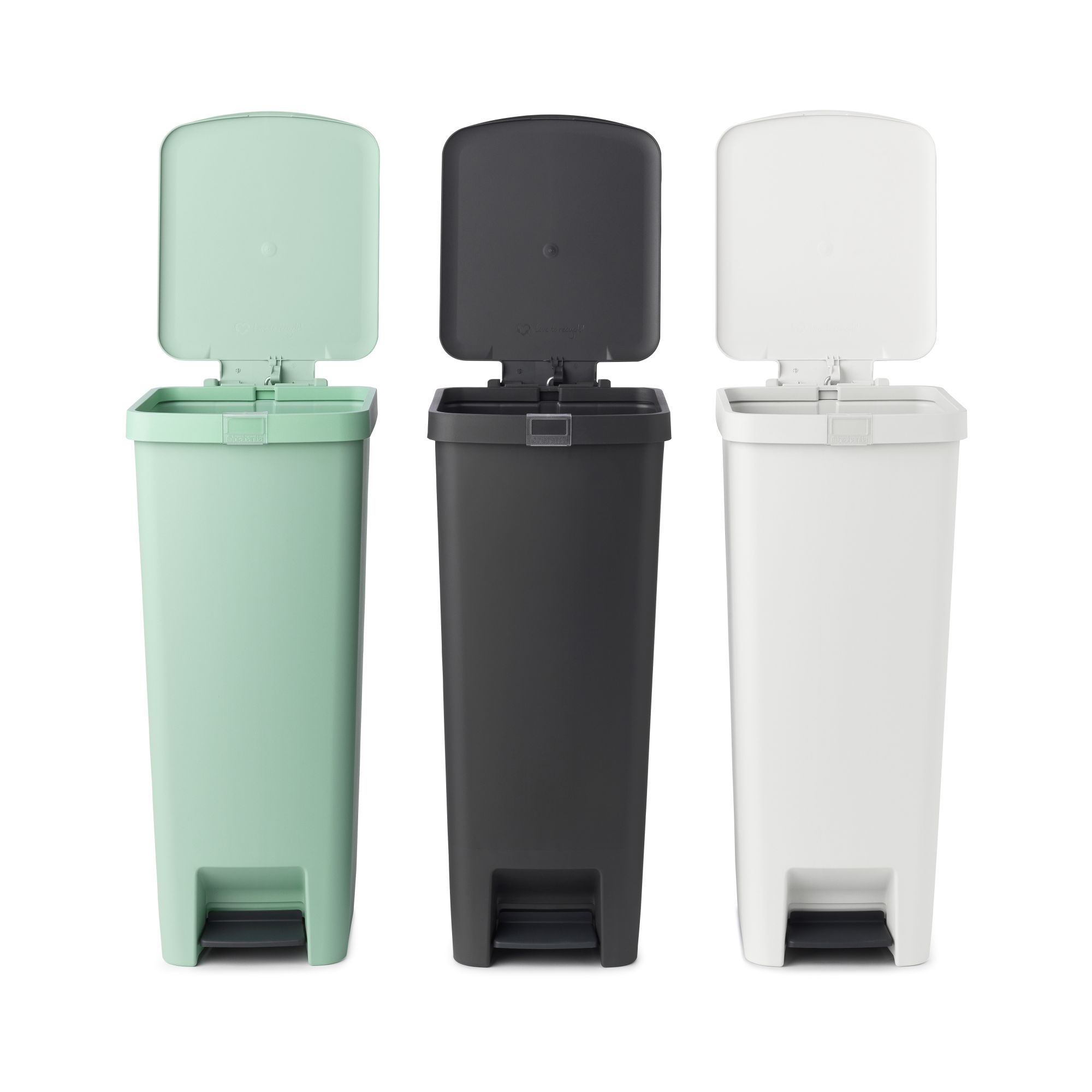 Pattumiera a pedale StepUp, dalla capacità di 40 litri, realizzata in plastica. Disponibile in 3 semplici finiture colore, StepUp è la pattumiera che ti permette di separare i rifiuti grazie alle etichette poste a click per contrassegnare la tipologia di rifiuto. StepUp è un pratico salvaspazio poiché si può appoggiare su una parete o si può posizionare comodamente in un angolo. I sacchetti PerfectFit sono adattabili. Progettata e realizzata da Brabantia.