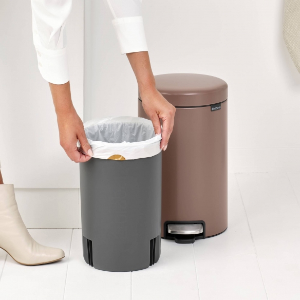 Pattumiera a pedale con capacità 12 litri, appartenente alla collezione NewIcon, realizzata in metallo con secchio interno in plastica. Disponibile in 12 finiture colore, NewIcon è una vera e propria icone del pulito. Inserire e togliere il sacchetto è semplicissimo, il secchio interno con fori di ventilazione evita l'effetto sottovuoto mentre un particolare meccanismo nasconde il sacchetto quando chiusa. Questa pattumiera dal design senza tempo ed igienica, si apre con un leggero tocco del pedale, è anti odore e ha una chiusura ammortizzata. Altri vantaggi: la base antiscivolo che la mantiene sempre ferma, e, naturalmente, il look iconico. Impossibile non amarla! Disegnata e progettata da Brabantia.