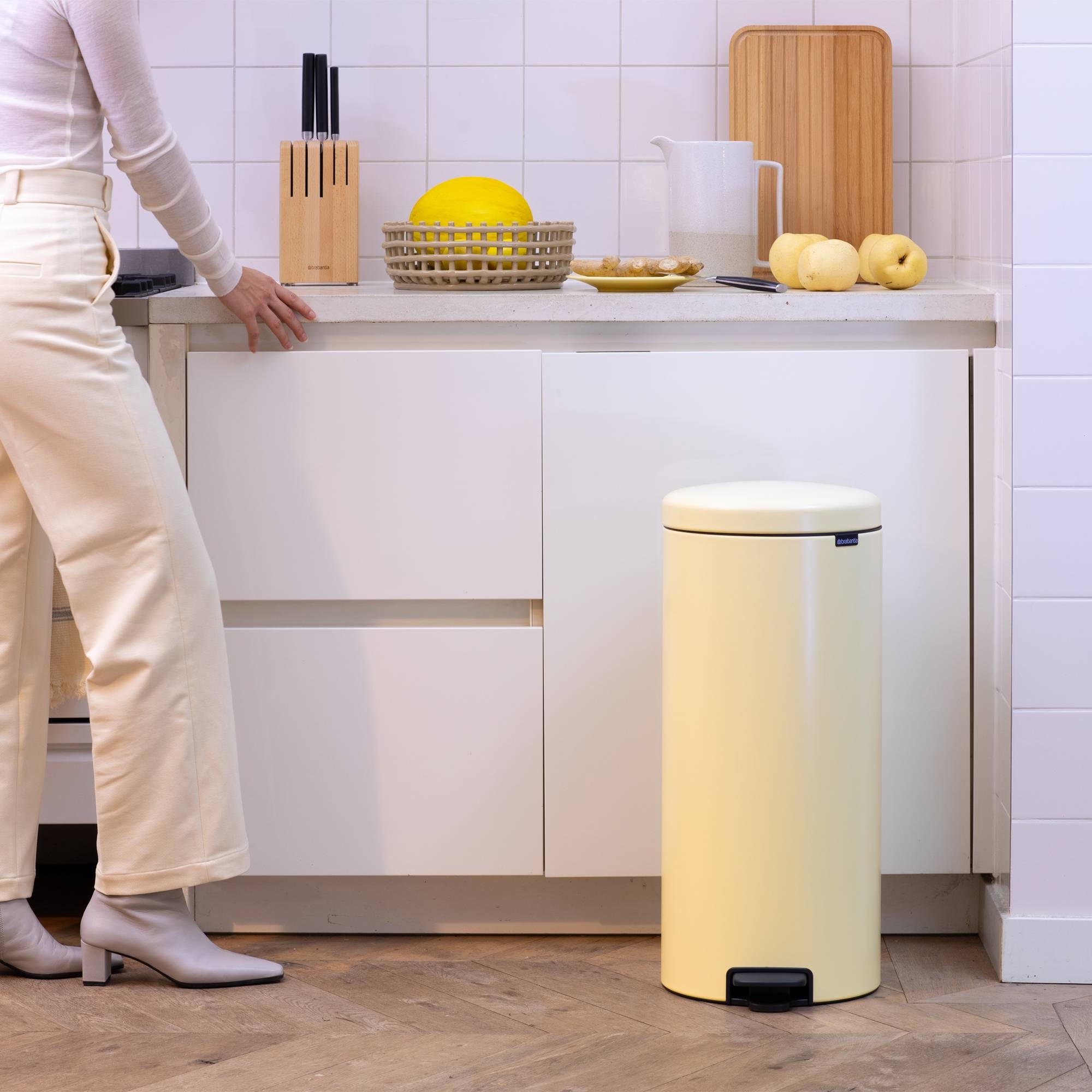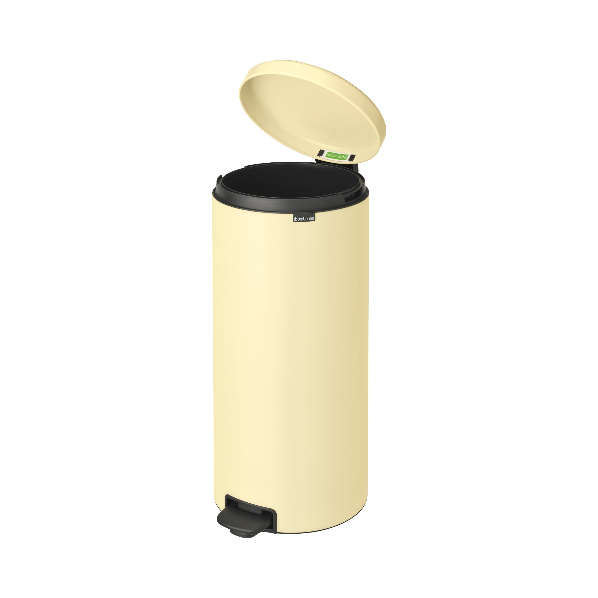 Pattumiera a pedale con capacità 30 litri, appartenente alla collezione NewIcon, realizzata in metallo con secchio interno in plastica. Disponibile in 13 finiture colore, NweIcon è una vera e propria icone del pulito. Inserire e togliere il sacchetto è semplicissimo, il secchio interno con fori di ventilazione evita l'effetto sottovuoto, mentre un particolare meccanismo nasconde il sacchetto quando chiusa. Questa pattumiera dal design senza tempo ed igienica, si apre con un leggero tocco del pedale, è anti odore e ha una chiusura ammortizzata. Altri vantaggi: la base antiscivolo che la mantiene sempre ferma, e, naturalmente, il look iconico. Impossibile non amarla! Disegnata e progettata da Brabantia.
