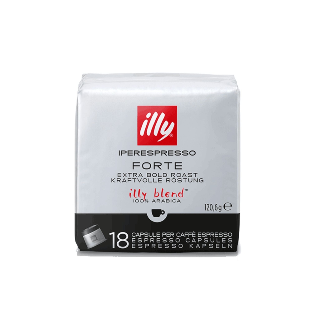 18 capsule Iperespresso, nella sfumatura di gusto "Forte". Questo caffè è caratterizzato da un gusto molto forte, ideale per gli amanti del gusto autentico del cioccolato fondente. La corposità è completata da un aroma di pan tostato, che gli dona un gusto ricco e molto deciso. Il caffè perfetto per chi vuole iniziare la giornata con uno spirito "Forte". Progettate e realizzate da Illy.