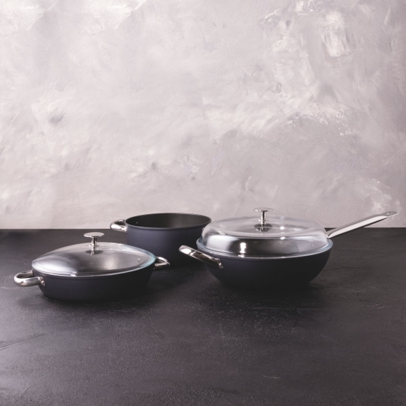 Eleganza e funzionalità allo stato puro per la tua cucina! La collezione Midnight Blue Silver Protection, firmata Sambonet, ti fornisce tutti gli strumenti necessari per preparazioni degne di nota! Padelle, wok, casseruole, bistecchiere, tegami e molti altri accessori sono pronti a garantirti prestazioni sorprendenti! Ogni pezzo di questa collezione è realizzato in acciaio inossidabile, dotato di un rivestimento antiaderente dalle proprietà microbiche: gli ioni d'argento rendono inospitali le superfici per microorganismi, quali batteri, muffe, virus e funghi, che non riescono a proliferare e sopravvivere. Oltre ad assicurarti il massimo igiene, i pezzi della collezione Midnight Blue Silver Collection garantiscono anche elevate prestazioni per quanto riguarda la preservazione dei gusti e degli aromi delle tue preparazioni in cucina. L'azione igienizzante, infatti, mantiene le superfici pulite e inodori, valorizzando al massimo i naturali profumi e aromi del cibo, rendendo ogni componente adatto anche per gli chef più esigenti. E tu? Sei pronto a donare qualità e carattere alla tua cucina? Con Midnight Blue Collection otterrai risultati da cuoco provetto! Scopri le altre esclusive collezioni firmate Sambonet qui, su Newpop.it!