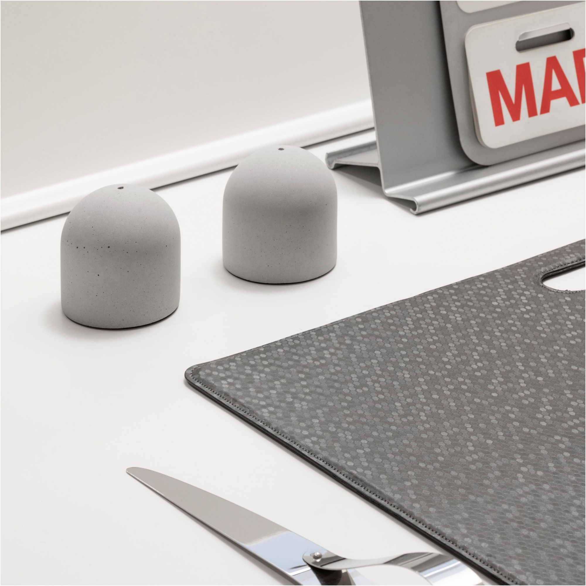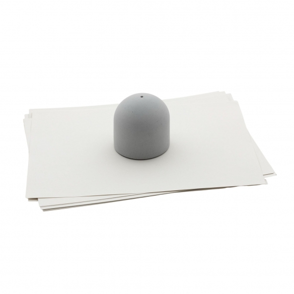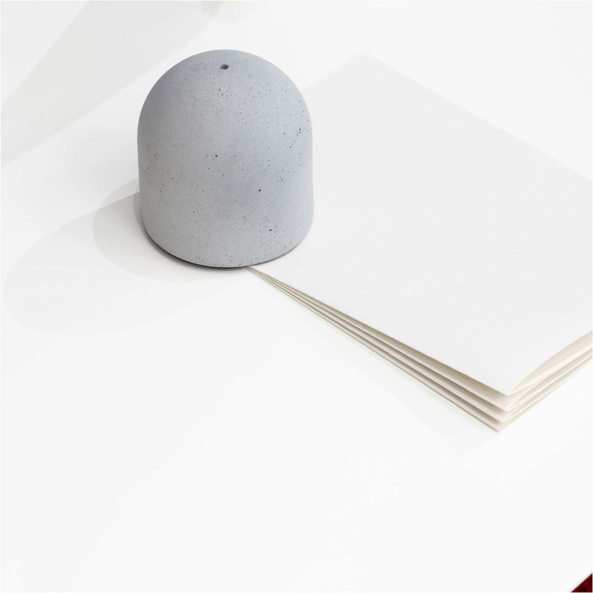 Fermacarte Medhelan, realizzato in cemento. Elegante e raffinato, il fermacarte Medhelan si ispira al classico dissuasore per il traffico, progettato da Enzo Mari nel 1980. Oltre che ricoprire perfettamente il ruolo di mantenere in ordine fogli e documenti, il fermacarte Medhelan si propone come una vera e propria scultura da tavolo, grazie all'affascinante design che lo contraddistingue. Disegnato da Giulio Iacchetti per Danese Milano.