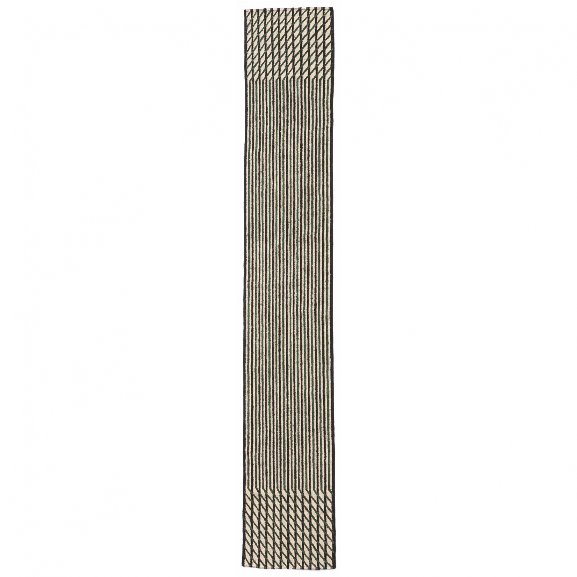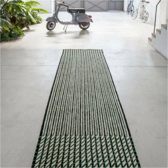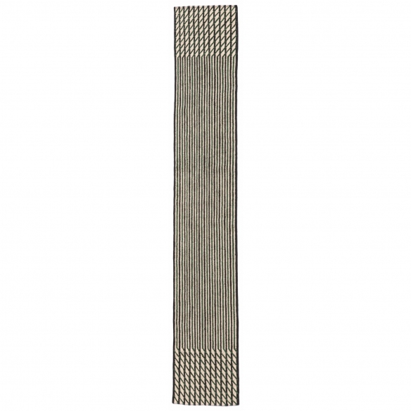 Tappeto runner 75x400 cm, appartenente alla collezione Blur, realizzato secondo la tecnica del kilim incombente a mano. Imponente ed elegante il tappeto runner Blur si contraddistingue per la capacità di offrire diverse letture. Osservandolo da lontano si nota una superficie incerta, sfocata. Avvicinandosi invece, il tappeto mostra linee e rombi ritmici, di diverse dimensioni. Questo processo è ottenuto invertendo il senso in cui i tappeti kilim vengono solitamente intrecciati, rendendo la trama degli stessi più fitta e suggestiva. Disegnato da Ronan & Erwan Bourollec per Nanimarquina.