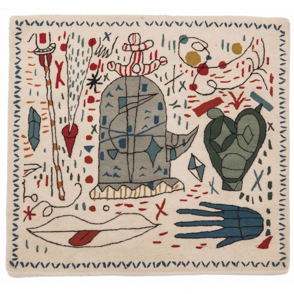 Tappetto Nani x Hayon realizzato in lana della Nuova Zelanda, con la tecnica del tufting manuale. L’illustrazione definisce le silhouette di diversi personaggi immaginari che si fondono e si intrecciano. Il tappeto può essere guardato da qualsiasi prospettiva attraverso i suoi nove lati da diverse angolazioni, si adatta perfettamente a qualsiasi spazio. Per la prima volta il ricamo viene posizionato su un kilim, un processo laborioso fatto a mano. Nani x Hayon è un caotico e meraviglioso mondo abitato da strane e magiche creature. Disegnato da Jaime Hayon per Nanimarquina.