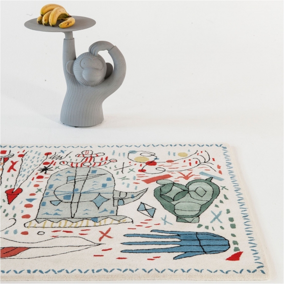 Jaime Hayon è il designer che è sicuramente conosciuto per la sua fantasia e la voglia di portare il suo mondo magico nei design che realizza. In questo caso Hayon crea un bellissimo tappeto che, da un primo sguardo rivela un caotico groviglio di colori e forme, tuttavia, dopo aver osservato attentamente, l'immaginazione di Jaime Hayon prende vita: tartarughe, labbra, mani, sgabelli, pesci, metà uomini – metà uccelli. Hayon introduce sottilmente il colore attraverso piccoli elementi traboccanti di personalità, che aiutano a interpretare ogni immagine. Nami x Hayon è il tappeto creato con una tecnica particolare, quella del tufting manuale, doveuna pistola ad azionamento manuale inietta pezzi di lana, si ottengono linee intuitive e fluide, oltre a una composizione organica. Questo tappeto è la riproduzione definitiva e fedele del bozzetto originale del designer. Scegli il tuo tappeto Nani x Hayon e scopri gli altri fantastici prodotti firmati Nanimarquina qui, su Newpop.it!