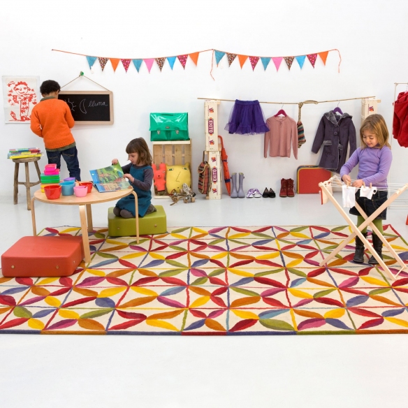 Tappeto Kala disponibile in diverse dimensioni, realizzato al 100% in lana vergine, secondo la tecnica del trapuntato a mano. Colorato e versatile, Kala è un tappeto che si ispira ai disegni originali degli studenti delle scuole di beneficenza Care & Fair in India; Nanimarquina dona 150 € di ogni tappeto venduto alla scuola Amita di Bhadohi. Le texture colorate di Kala lo rendono perfetto per qualsiasi arredamento classico o contemporaneo. Disegnato da Nani Marquina.