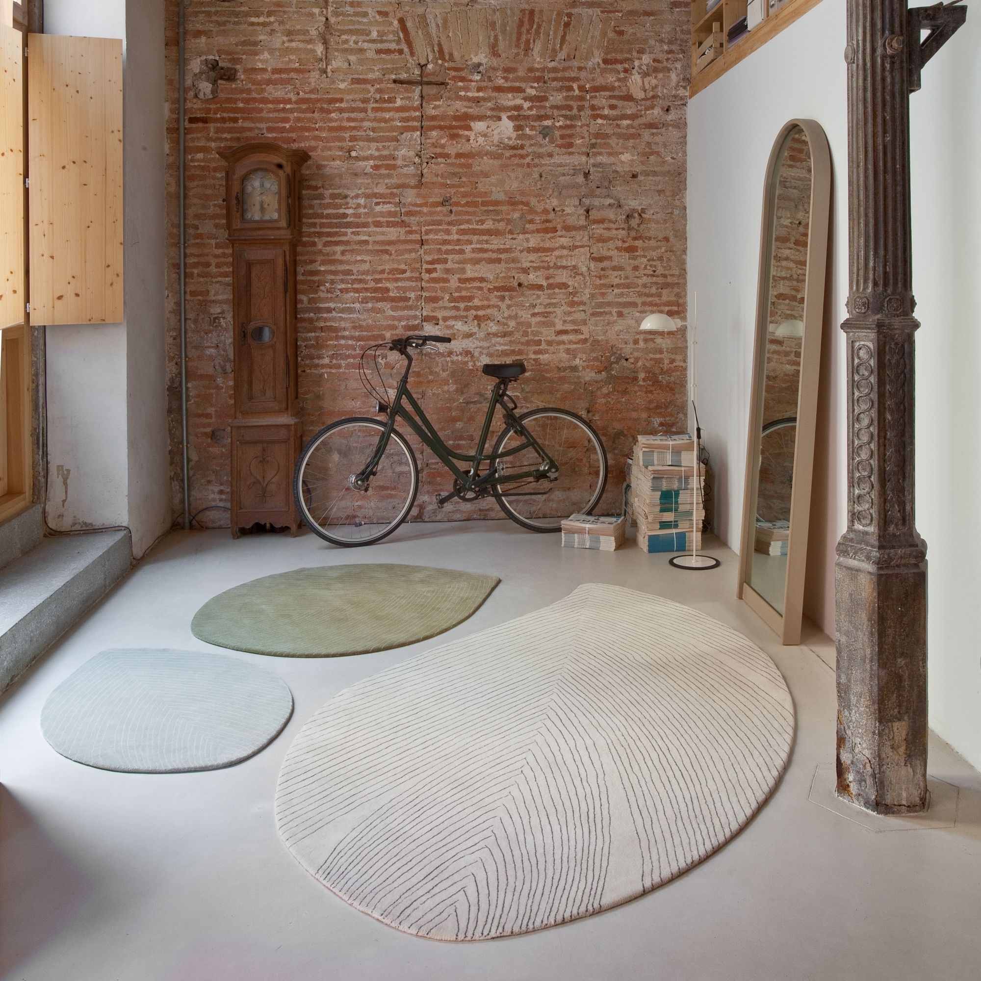 Tappeto Quill Small realizzato in 100% lana vergine. Quill è realizzata a mano, rendendo ogni pezzo unico e diverso come la natura stessa. Quill esprime la comprensione della bellezza che sta nel modesto, nel rustico e nell'imperfetto. Ciò che i giapponesi chiamano wabi sabi, una filosofia che è evidente in tutto il lavoro di Tamura. Disponibile in tre dimensioni e in una gamma di colori pastello e naturali: verde oliva pallido, verde pietra e avorio. Disegnato da Nao Tamura per Nanimaquina.