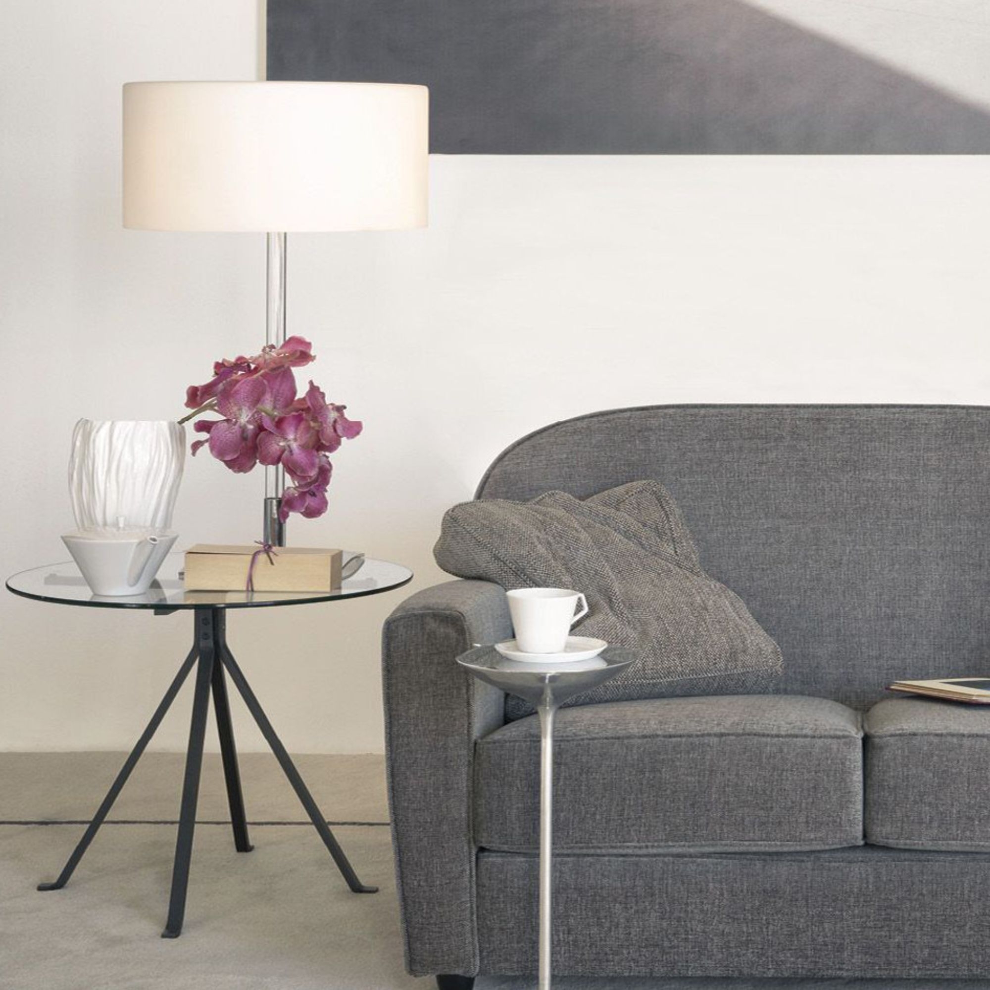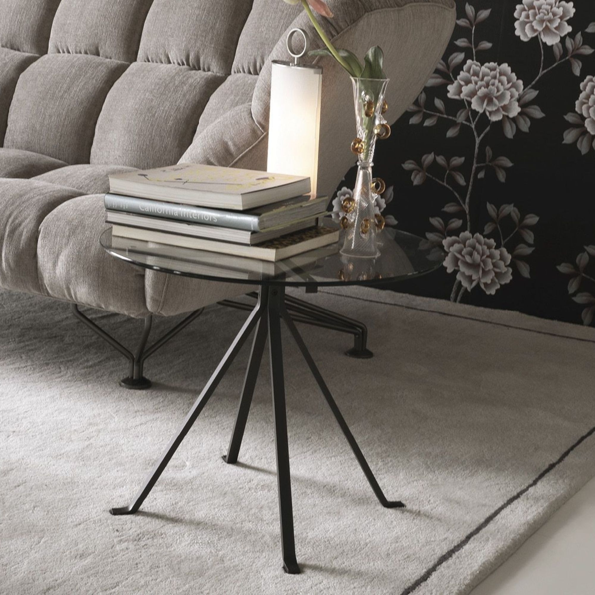 Tavolino dal diametro di 62 cm, appartenente alla collezione Cuginetto, realizzato con struttura in profilati di acciaio verniciati di colore nero antracite, piano in vetro temperato dallo spessore di 8 millimetri. Adatto solo per uso interno, il tavolino Cuginetto colpisce a primo impatto per la linearità delle forme e per l'eleganza del disegno, arricchito da materiali pregiati e resistenti. Una presenza piacevole in qualsiasi contesto d'arredamento. Disegnato da Enzo Mari nel 1973 per Driade.