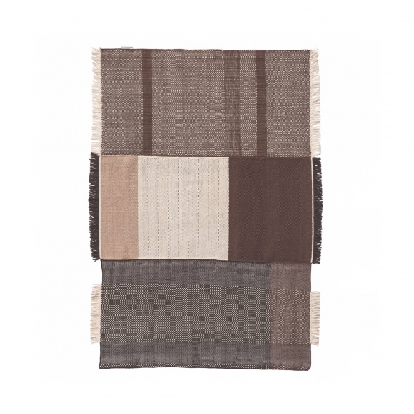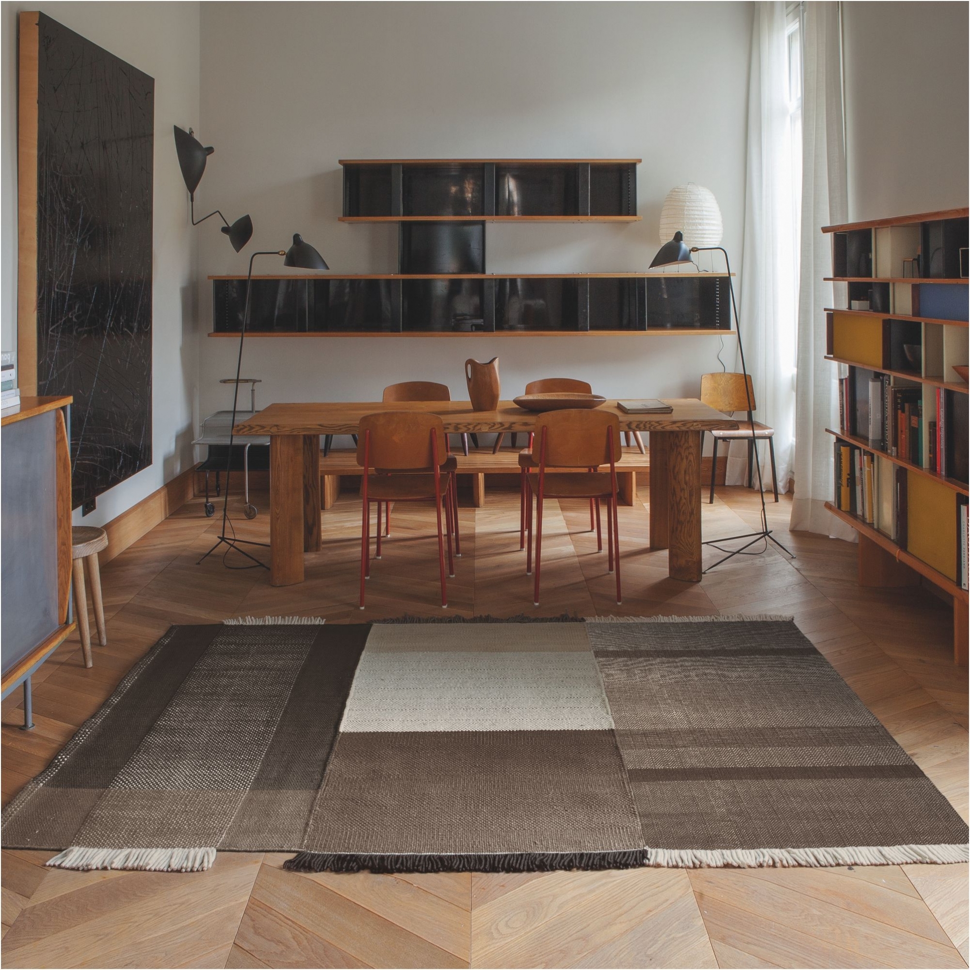 Tappeto Tres realizzato in lana della Nuova Zelanda e feltro. Il tappeto Tres è formato da tre strisce di colore che vengono cucite insieme. Inoltre, le varianti di colore sono varie, dal nero al blu, dal color salvia all’ocra, dal turchese al perla. La tecnica utilizzata è quella Dhurrie e le tradizioni indiane e giapponesi entrano in contatto per creare questo meraviglioso tappeto. Disegnato da Nani Marquina.