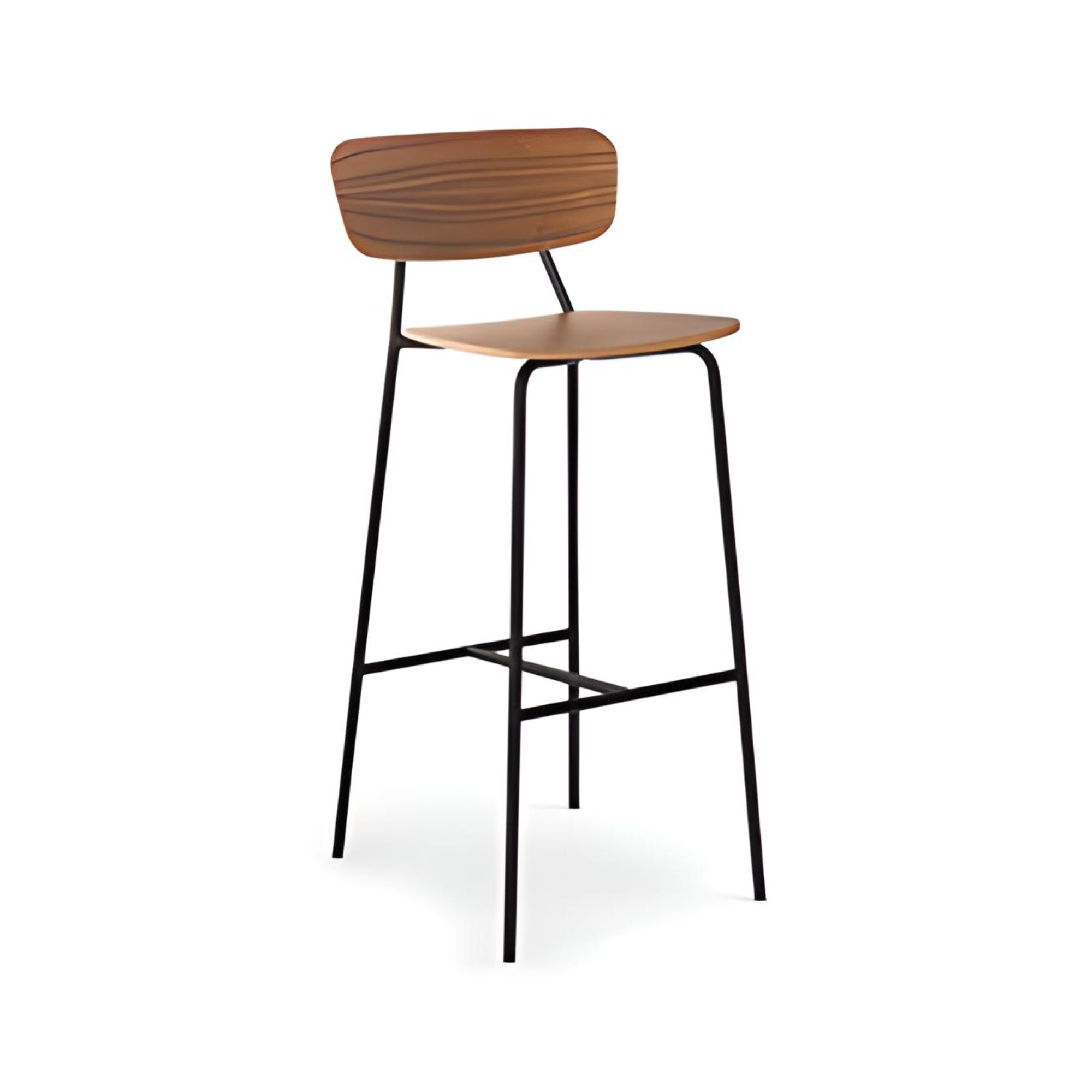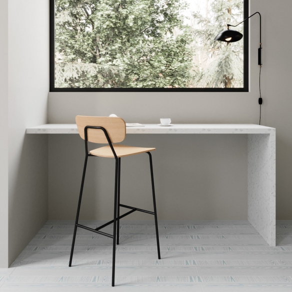 Sgabello appartenente alla collezione Ibetta, realizzato con struttura in tubo metallico verniciato a polveri, schienale e sedile in multistrato impiallacciato rovere. La finitura delle parti in legno è completata con una vernice acrilica trasparente. Lineare e compatto, lo sgabello Ibetta si presenta con delle linee agili e slanciate,  a creare un oggetto divertente e versatile. Pensato per arredare gli spazi pubblici e per ridefinire l’estetica del bar e del ristorante, lo sgabello Ibetta è un'amore a prima vista! Disegnato da Stefano Bettio per Sculptures Jeux.