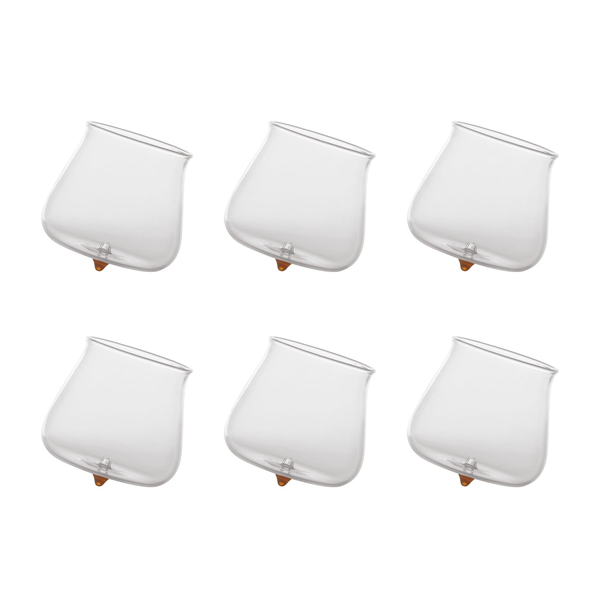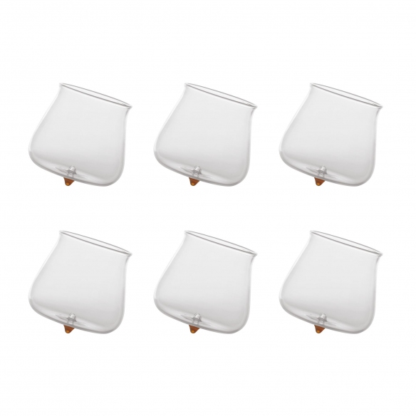 6 bicchieri da 40 cl della collezione Pirolo, realizzati in vetro borosilicato lavorato a mano. Disponibili in 6 eleganti finiture di colore, i bicchieri Pirolo si contraddistinguono per l'unicità del design. La forma è ispirata ad uno dei classici giochi d'infanzia, la trottola: l'elemento che sporge dalla base fa si che il bicchiere ruoti attorno al proprio asse. Eleganti e raffinati, i bicchieri Pirolo renderanno magiche le occasioni importanti. Disegnati da Federico De Majo per Zafferano.