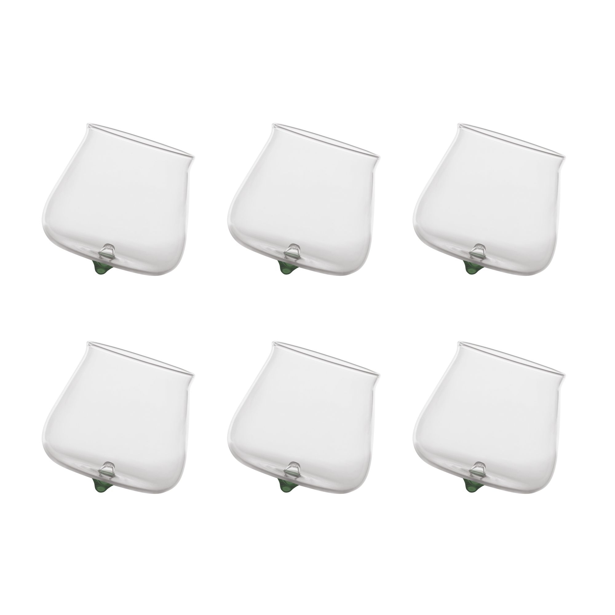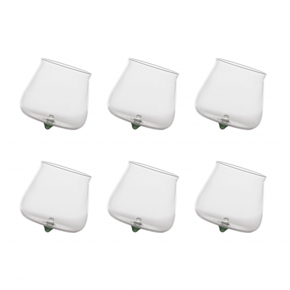 6 bicchieri da 40 cl della collezione Pirolo, realizzati in vetro borosilicato lavorato a mano. Disponibili in 6 eleganti finiture di colore, i bicchieri Pirolo si contraddistinguono per l'unicità del design. La forma è ispirata ad uno dei classici giochi d'infanzia, la trottola: l'elemento che sporge dalla base fa si che il bicchiere ruoti attorno al proprio asse. Eleganti e raffinati, i bicchieri Pirolo renderanno magiche le occasioni importanti. Disegnati da Federico De Majo per Zafferano.