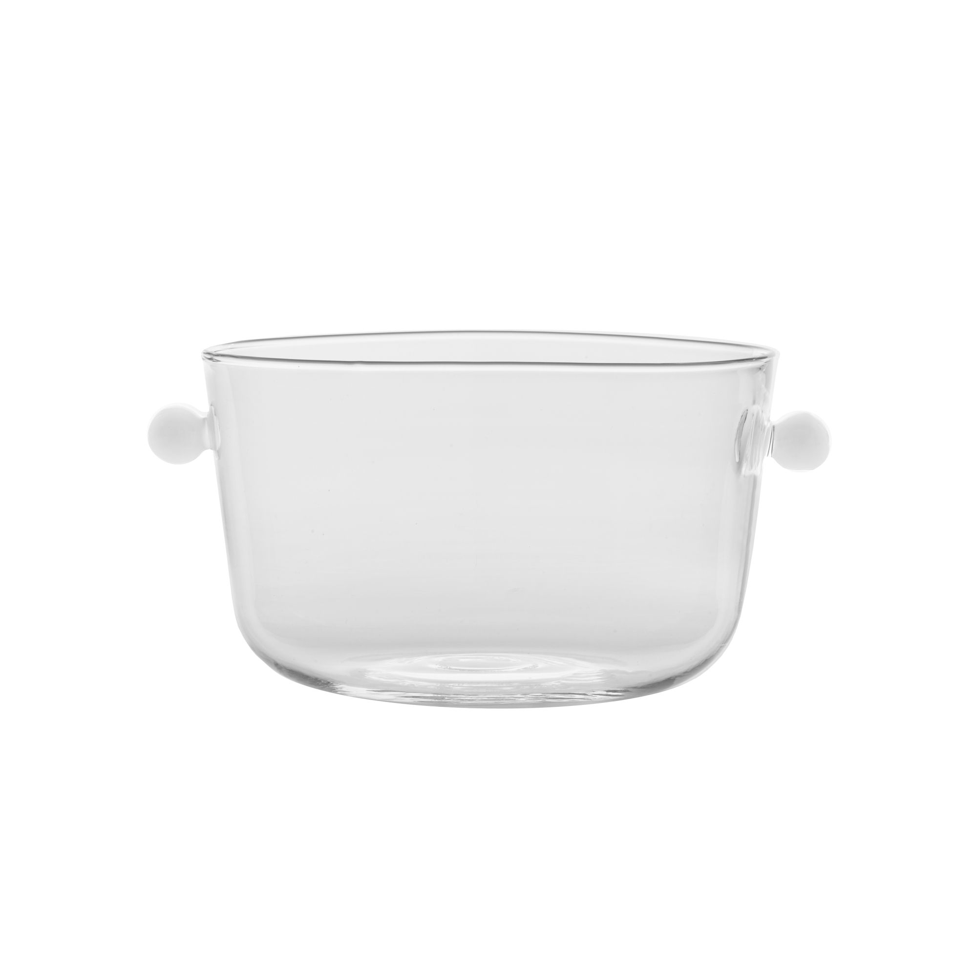 Ciotola alta della collezione Bilia, realizzata in vetro borosilicato lavorato a mano. La particolarità sta nei manici a forma di biglie bianche che conferiscono allo stesso tempo eleganza e funzionalità. La ciotola Bilia è perfetta per servire in tavola contorni, aperitivi e snack. Disegnata da Federico De Majo per Zafferano.