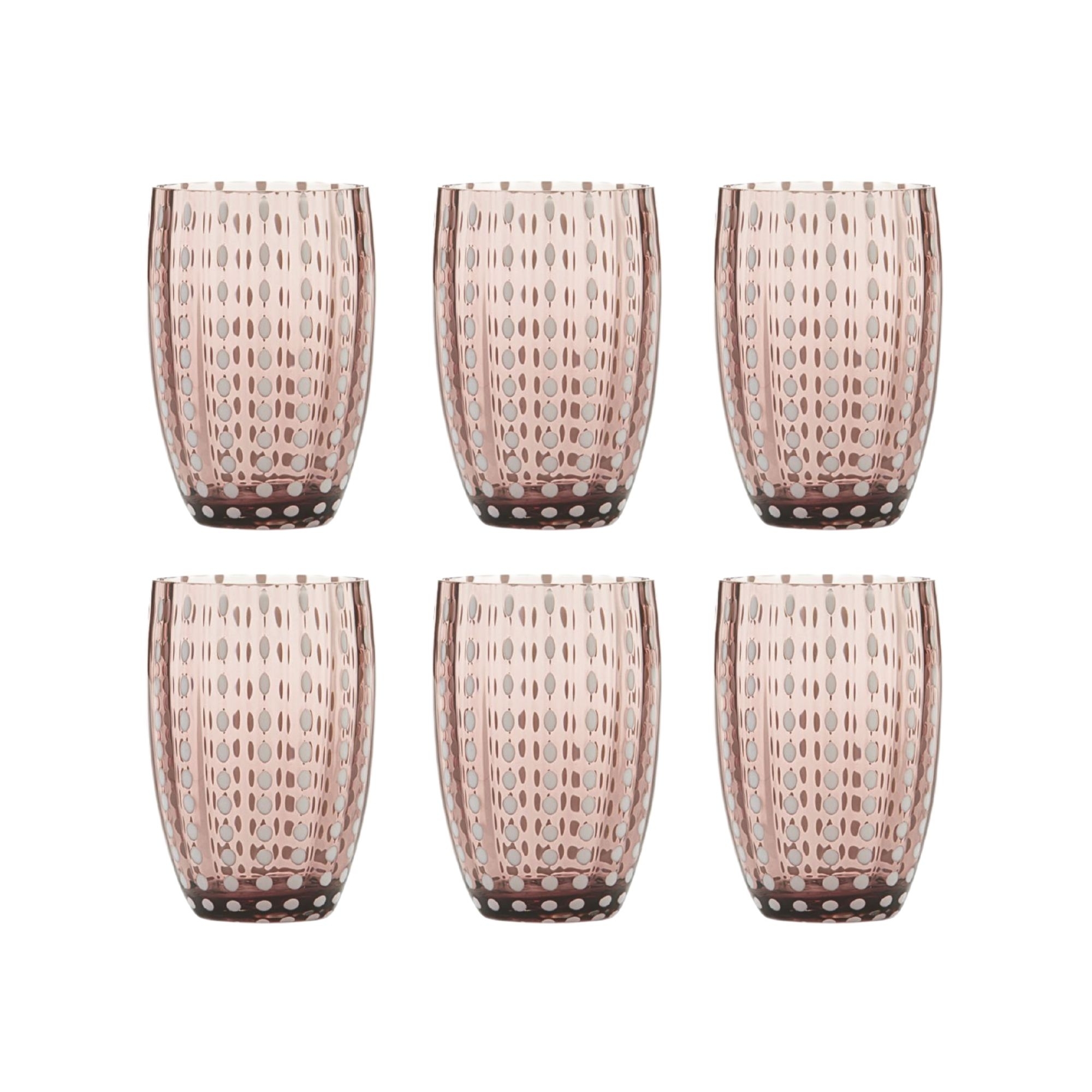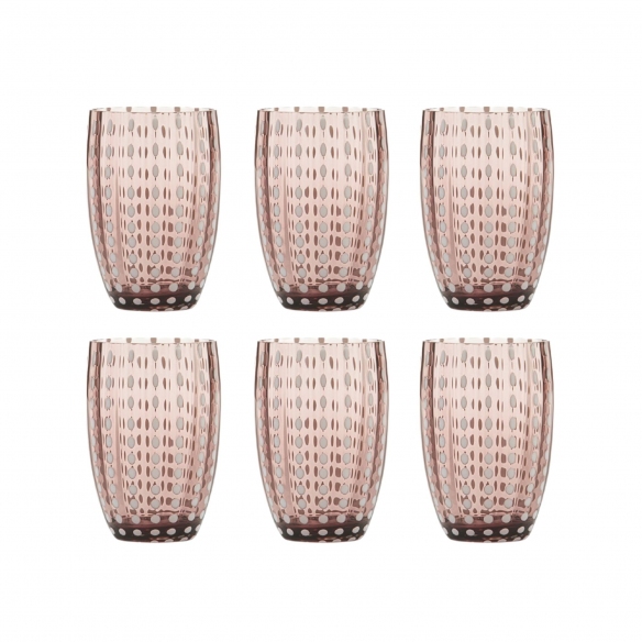 6 bicchieri dalla capacità di 32 cl, appartenente alla collezione Perle, realizzati in vetro borosilicato lavorato a mano. Disponibili in 14 eleganti e versatili finiture di colore, i bicchieri Perle si contraddistinguono per l'esclusivo design e per i materiali di altissima qualità. Le perle sono presenti su tutta la superficie del bicchiere e conferiscono ulteriore eleganza e raffinatezza. I bicchieri perfetti per aggiungere un tocco di vivacità alla tavola! Disegnati da Federico De Majo per Zafferano.
