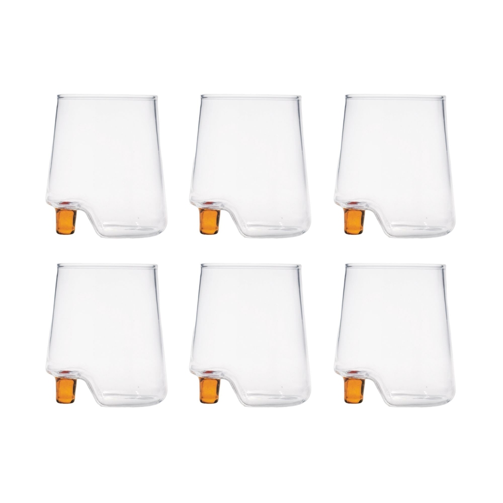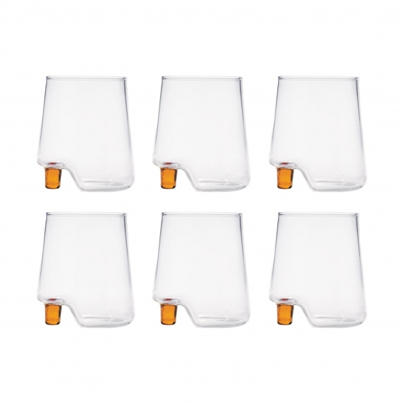 6 bicchieri da 42 cl, appartenenti alla collezione Gamba De Vero, realizzati in vetro borosilicato lavorato a mano. Sono disponibili in 6 diverse finiture di colore e si presentano con un design molto singolare. La forma ricorda quella di uno stivale, con il tacco colorato che è un vero e proprio fiore all'occhiello. Perfetti per occasioni speciali, i bicchieri Gamba De Vero porteranno uno stile unico direttamente sulla tua tavola. Disegnati da Federico De Majo per Zafferano.