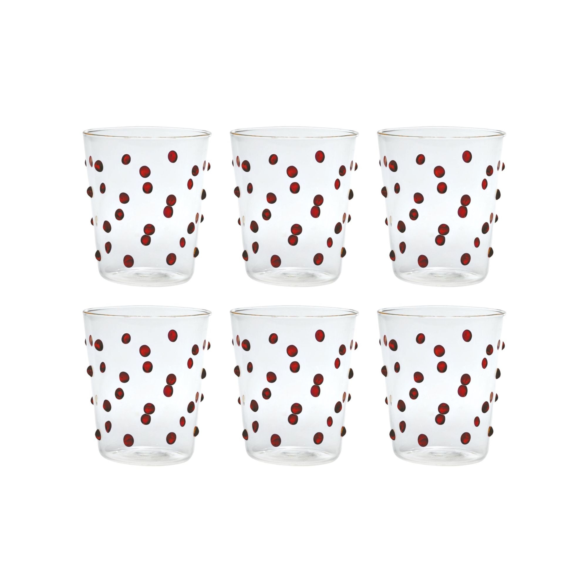 6 bicchieri Party Junior da 9.5 cl, realizzati in vetro borosilicato lavorato a mano. Disponibile in 7 diverse ed eleganti finiture di colore, i bicchieri Party Junior si contraddistinguono per la straordinaria preziosità del design: numerosi e brillanti zaffiri si alternano sulla superficie di ogni bicchiere, donando uno stile raffinato all'intera apparecchiata. Disegnati da Federico De Majo per Zafferano.