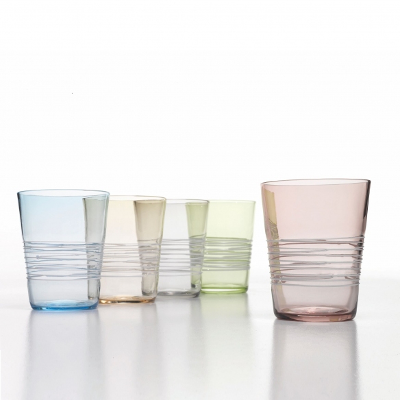 6 bicchieri da 40 cl, appartenenti alla collezione Filante, realizzati in vetro soffiato e lavorato. Disponibili in 6 eleganti e delicate finiture di colore, i bicchieri Filante sono perfette per creare allegre e vivaci apparecchiate. I fili in vetro lattimo applicati alla superficie dei bicchieri oltre che essere un suggestivo elemento decorativo, risulta anche piacevole al tatto. Disegnati da Federico De Majo per Zafferano.