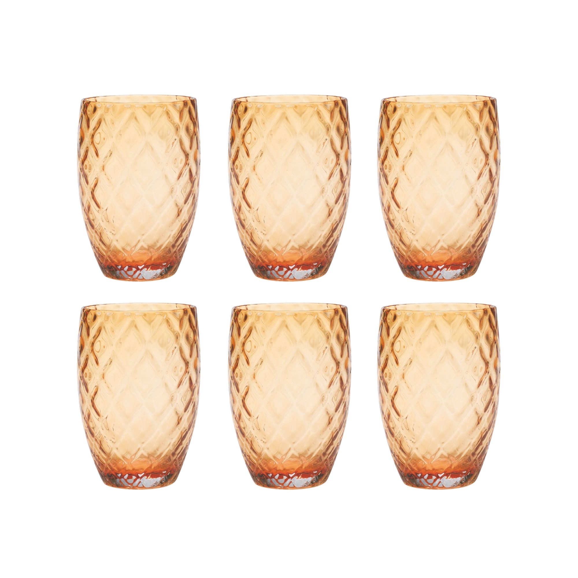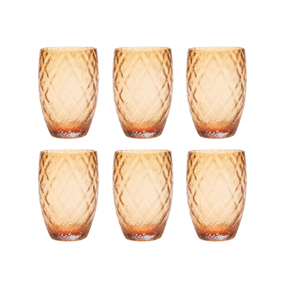 6 bicchieri da 38 cl, appartenenti alla collezione Losanghe, realizzati in vetro soffiato a bocca, su stampo, e lavorato a mano. Sono disponibile in 8 finiture di colore e si presentano con un design molto elegante, contraddistinto dal disegno a rombi. Molto resistenti e duraturi, i bicchieri Losanghe sono perfetti per l'uso quotidiano. Disegnati da Federico De Majo per Zafferano.