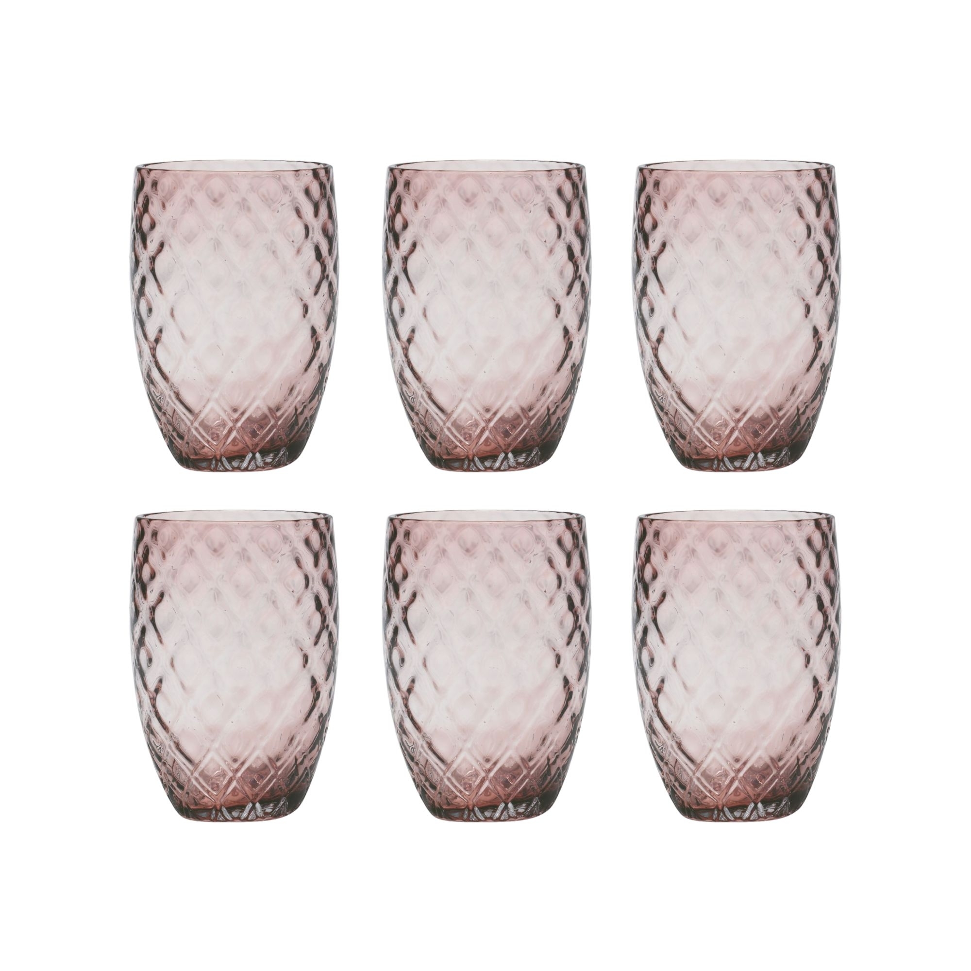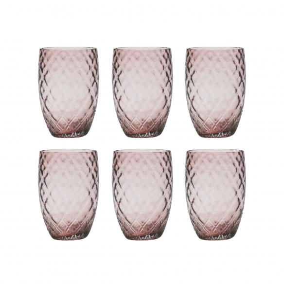 6 bicchieri da 38 cl, appartenenti alla collezione Losanghe, realizzati in vetro soffiato a bocca, su stampo, e lavorato a mano. Sono disponibile in 8 finiture di colore e si presentano con un design molto elegante, contraddistinto dal disegno a rombi. Molto resistenti e duraturi, i bicchieri Losanghe sono perfetti per l'uso quotidiano. Disegnati da Federico De Majo per Zafferano.
