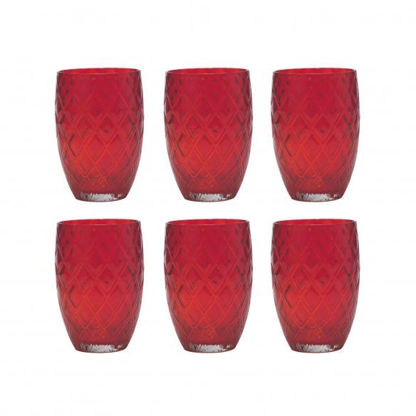 6 bicchieri da 38 cl, appartenenti alla collezione Losanghe, realizzati in vetro soffiato a bocca, su stampo, e lavorato a mano. Sono disponibile in 8 finiture di colore e si presentano con un design molto elegante, contraddistinto dal disegno a rombi. Molto resistenti e duraturi, i bicchieri Losanghe sono perfetti per l'uso quotidiano. Disegnati da Federico De Majo per Zafferano.