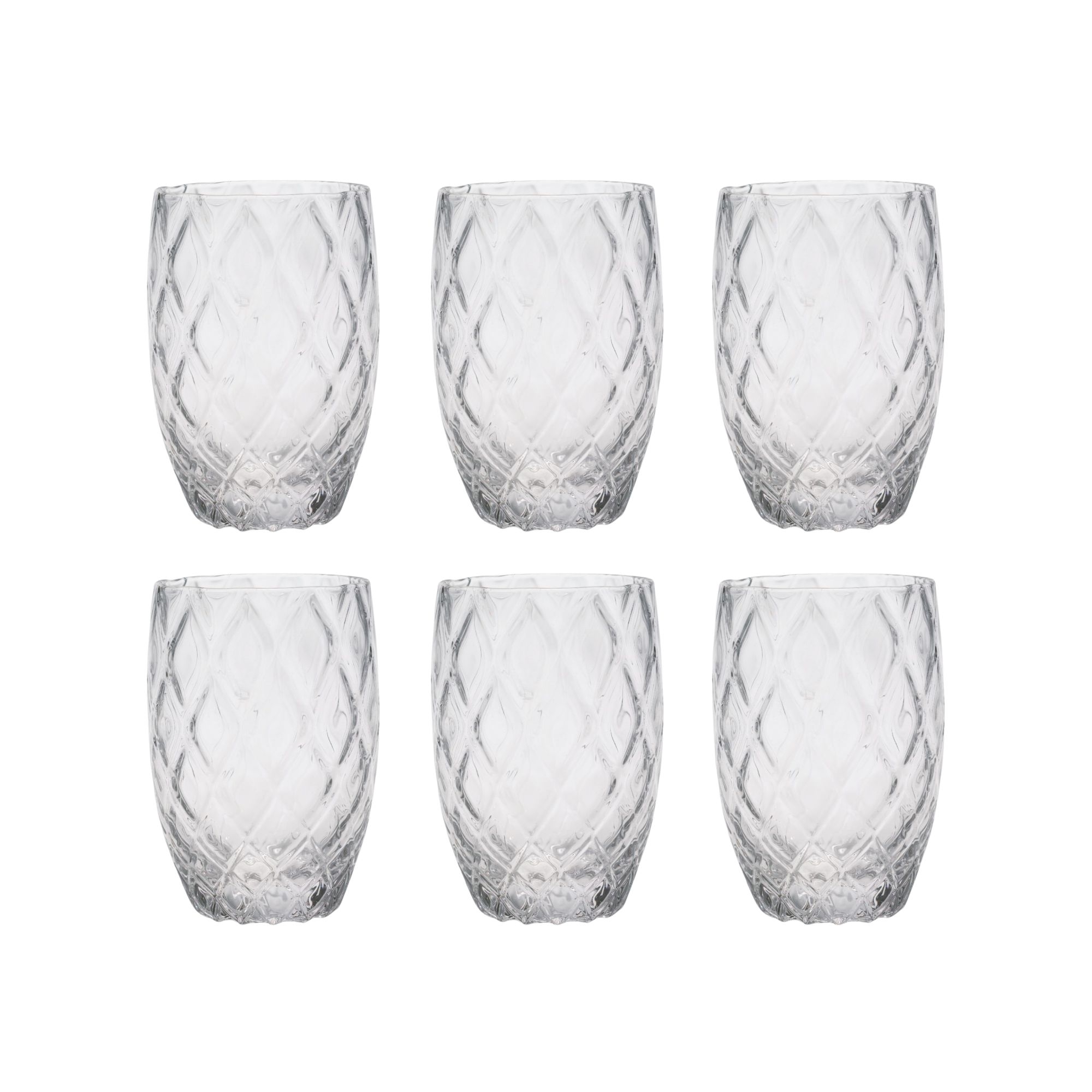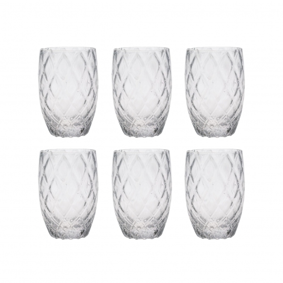 6 bicchieri da 38 cl, appartenenti alla collezione Losanghe, realizzati in vetro soffiato a bocca, su stampo, e lavorato a mano. Sono disponibile in 8 finiture di colore e si presentano con un design molto elegante, contraddistinto dal disegno a rombi. Molto resistenti e duraturi, i bicchieri Losanghe sono perfetti per l'uso quotidiano. Disegnati da Federico De Majo per Zafferano.