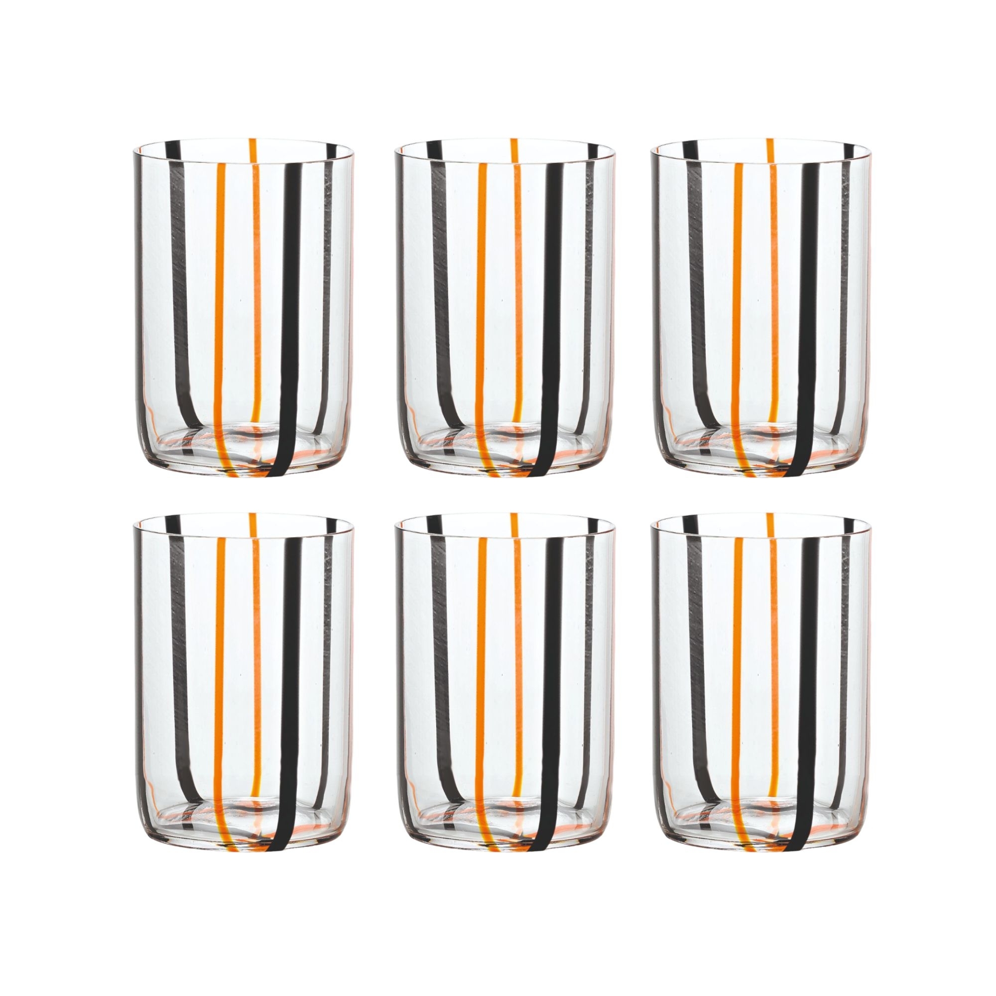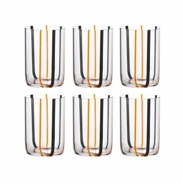 6 bicchieri da 35 cl, appartenenti alla collezione Tirache, realizzati in vetro soffiato e lavorato a mano. Disponibili in 6 diverse e particolari combinazioni di colore, i bicchieri Tirache si contraddistinguono per il design molto particolare e suggestivo, in cui si incontrano diverse cromie. Perfetti per le occasioni speciali, i bicchieri Tirache porteranno un'esplosione di colori direttamente sulla tua tavola. Disegnati da Federico De Majo per Zafferano.