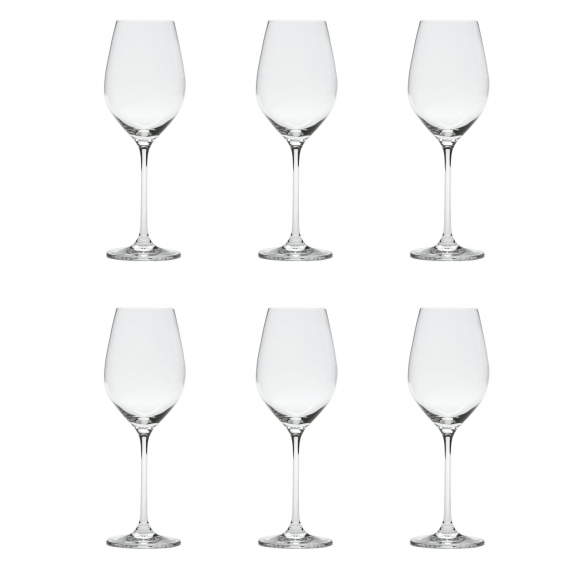 Set di 6 calici da 36 cl, appartenente alla collezione Eventi. Realizzati in vetro sonoro superiore senza piombo, questi splendidi calici ti permetteranno di percepire al meglio gusti e odori dei tuoi vini preferiti, grazie alla forma compatta e ai materiali di qualità massima. Sono perfetti per l'utilizzo in enoteche, wine bar, ristoranti e anche nelle manifestazioni enogastronomiche. Disegnati da Federico De Majo per Zafferano.
